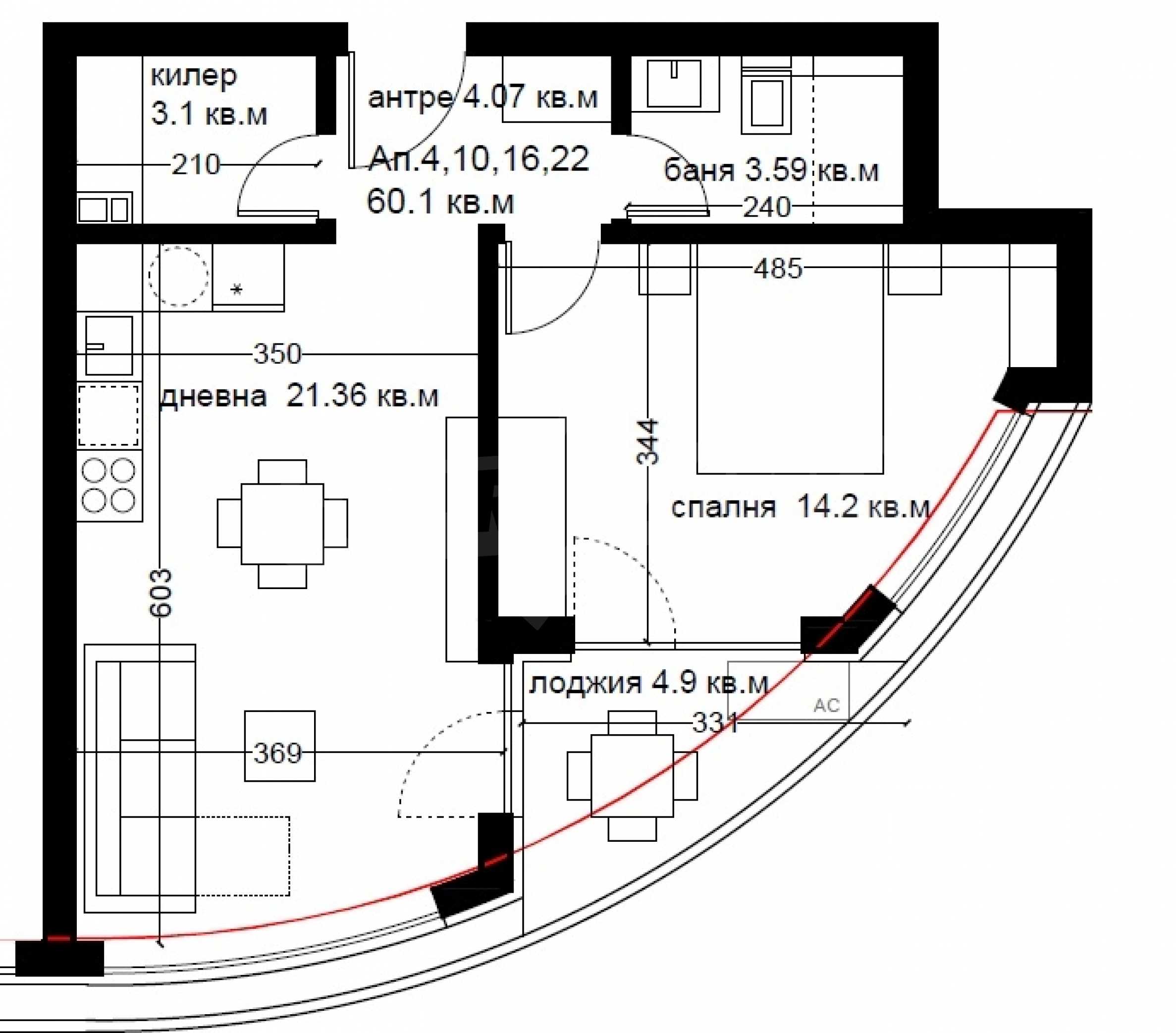 We present to you a new one-bedroom apartment of 69.1 m2, which will be located on the 2nd floor in Section "A" in the new residential complex in Varna.