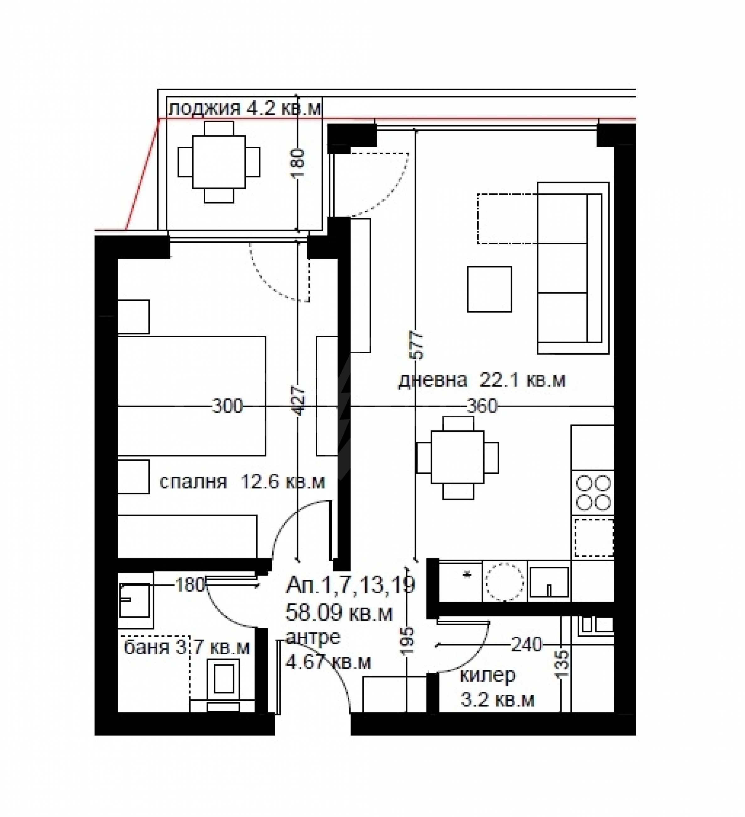 We present to you a new functional one-bedroom apartment of 66.8 m2, which will be located on the 2nd floor in Section "A" in the new residential complex in Varna.