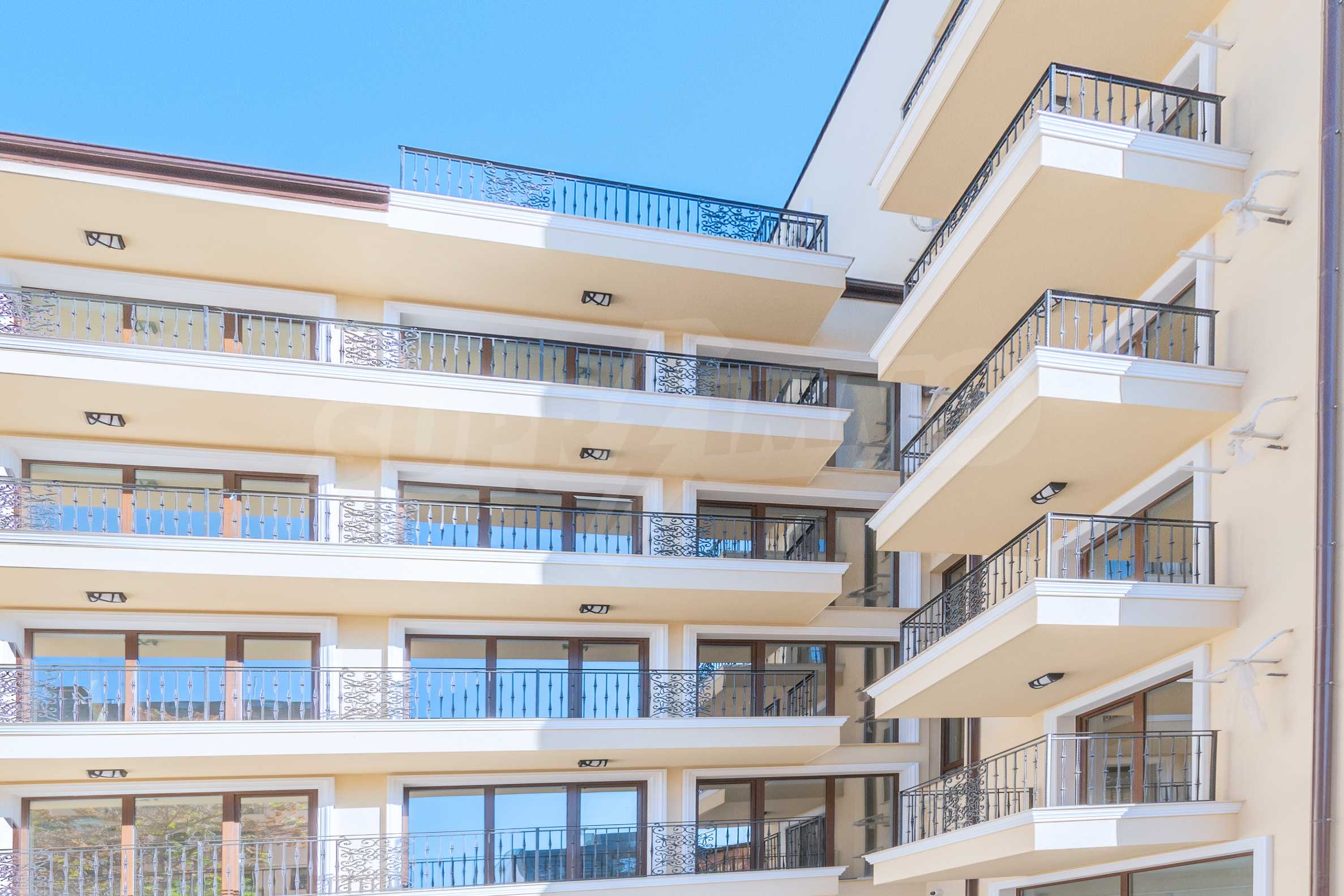 The building has various two-bedroom apartments, spacious bedrooms and living rooms. The common parts of the building are luxuriously finished with natural materials. There is a possibility to buy a parking space or a garage. Excellent investment.