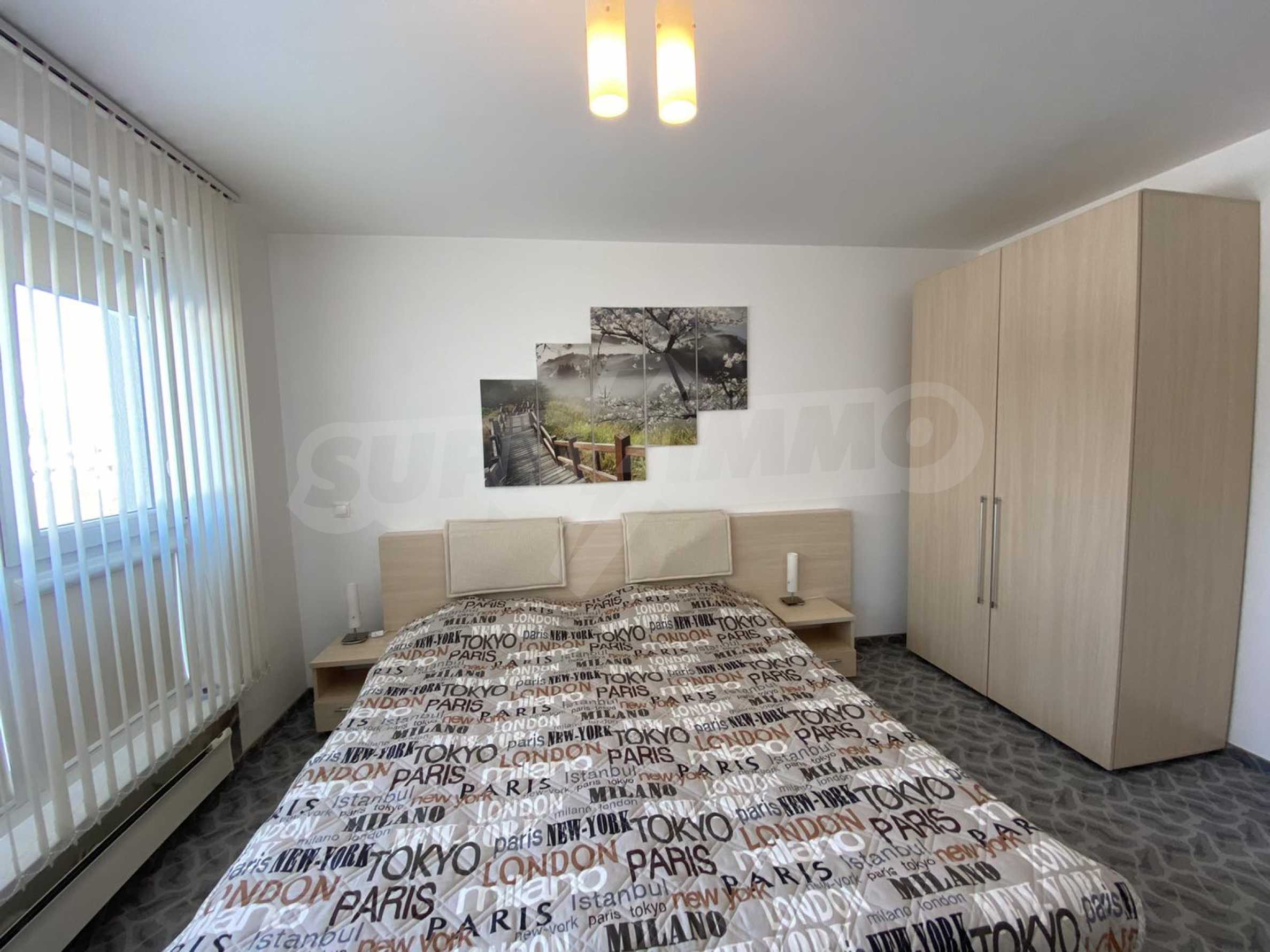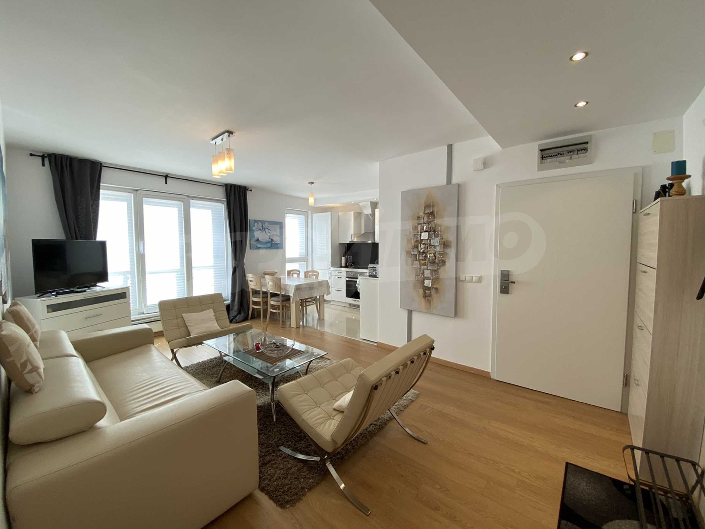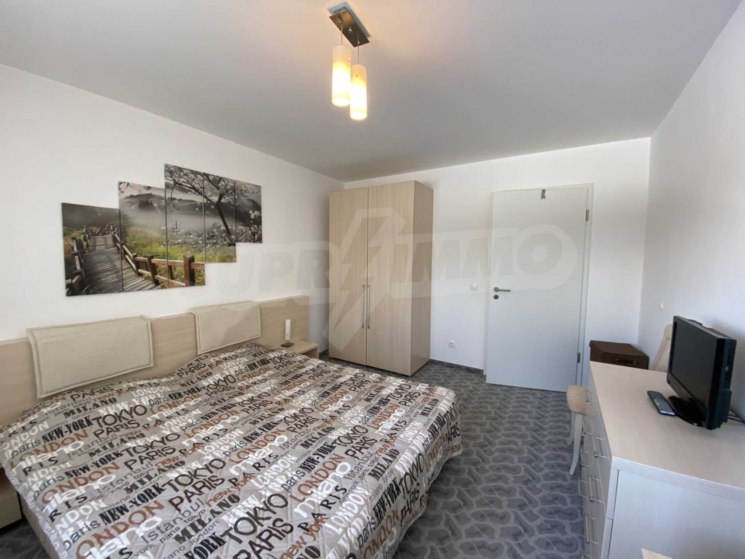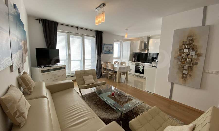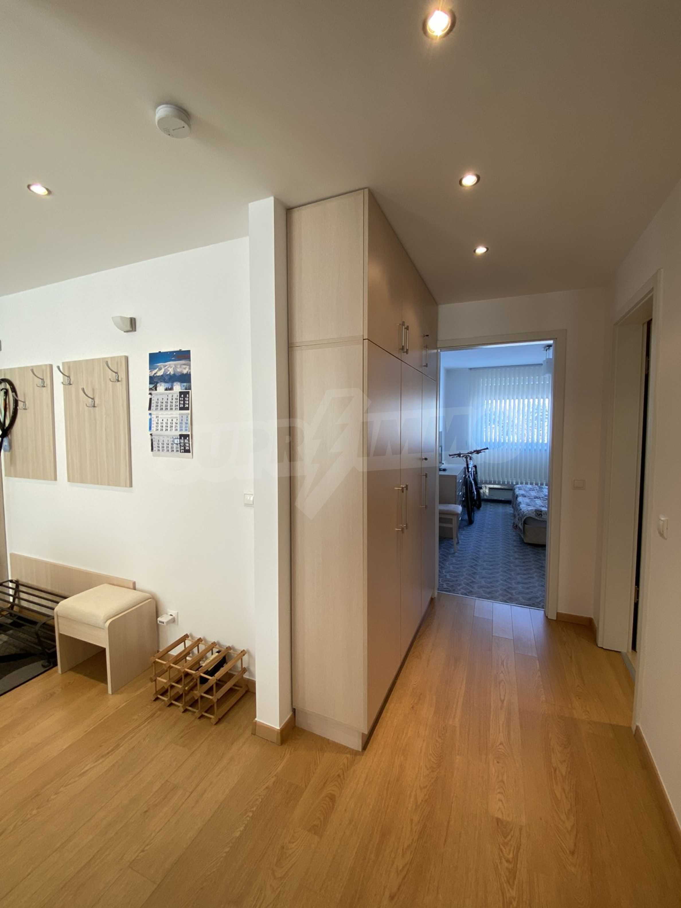 A bright, spacious two-bedroom apartment in modern gated complex St. George Palace, built in Kosherina area in the ski resort Bansko, at the foot of the Pirin mountains. 800 metres from the cable car station and 200 metres from the slopes. The complex offers its guests modern luxury, comfort, tranquility and proximity to the pure and beautiful nature and a range of cultural, architectural and historical attractions and various opportunities for winter and summer sports, SPA treatments, Golf sports.