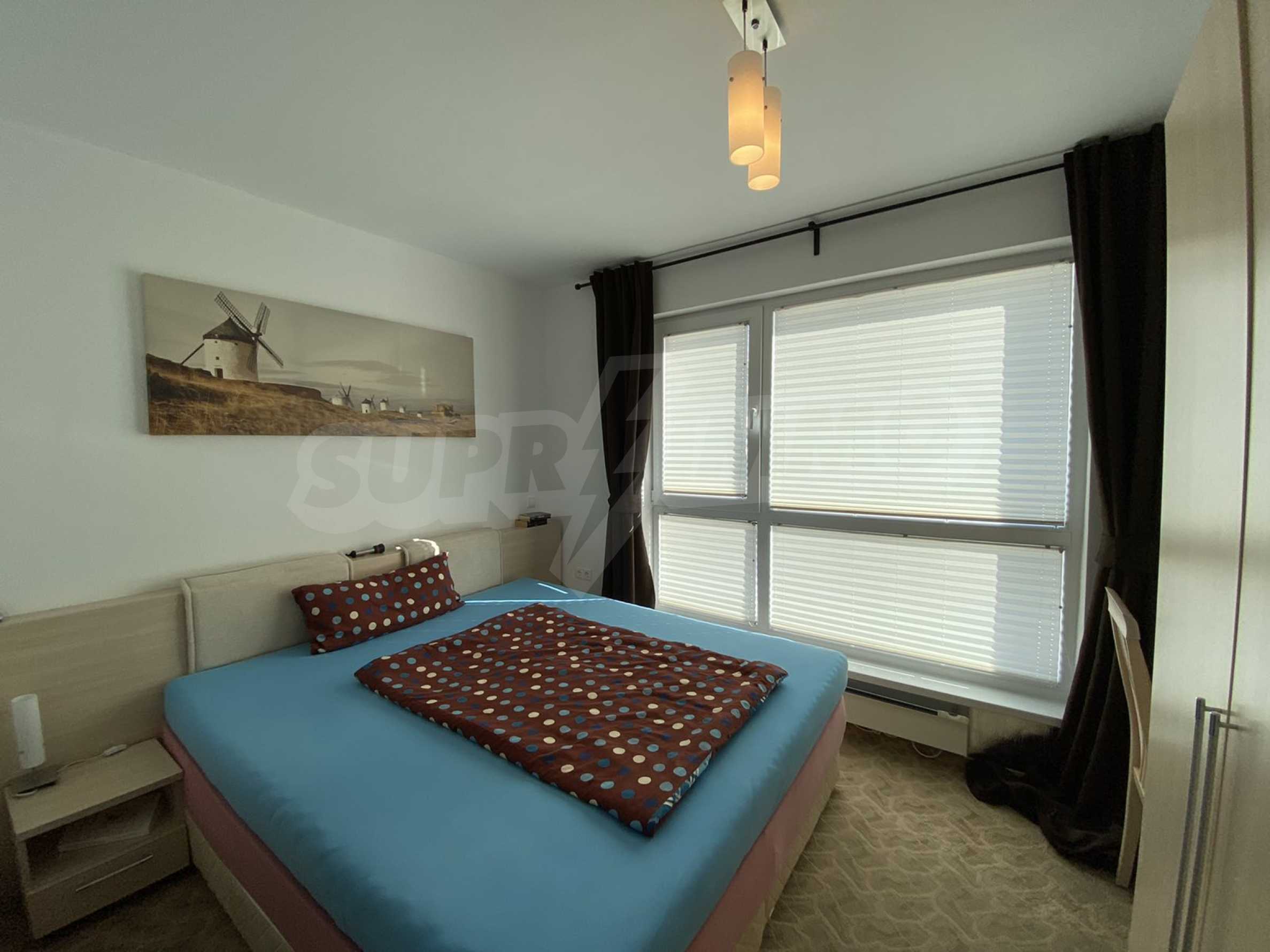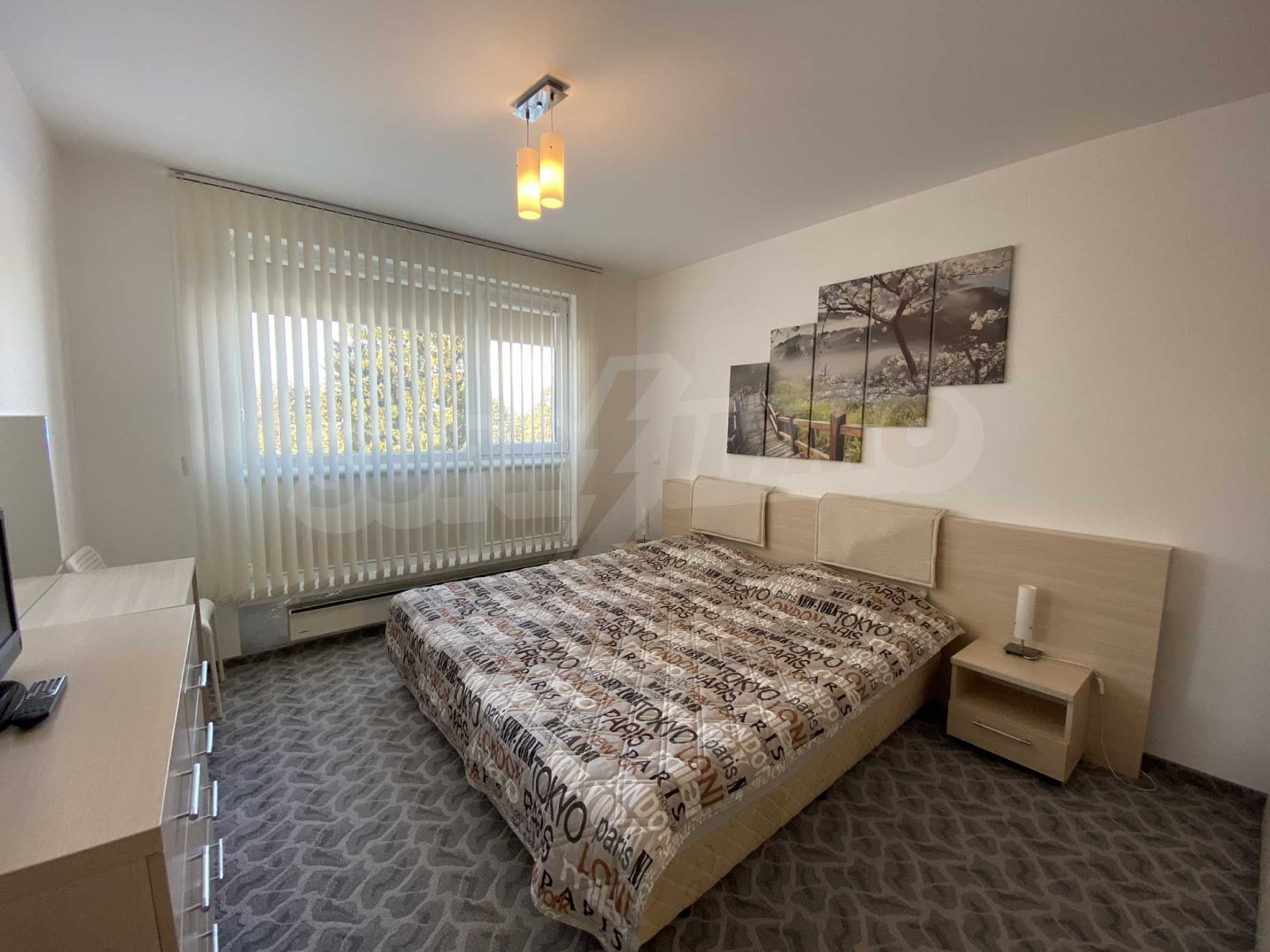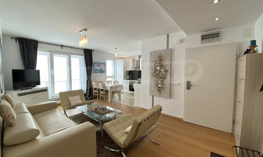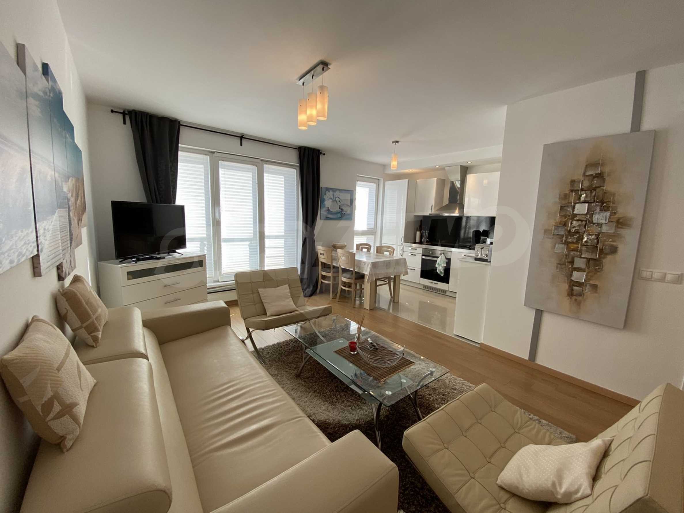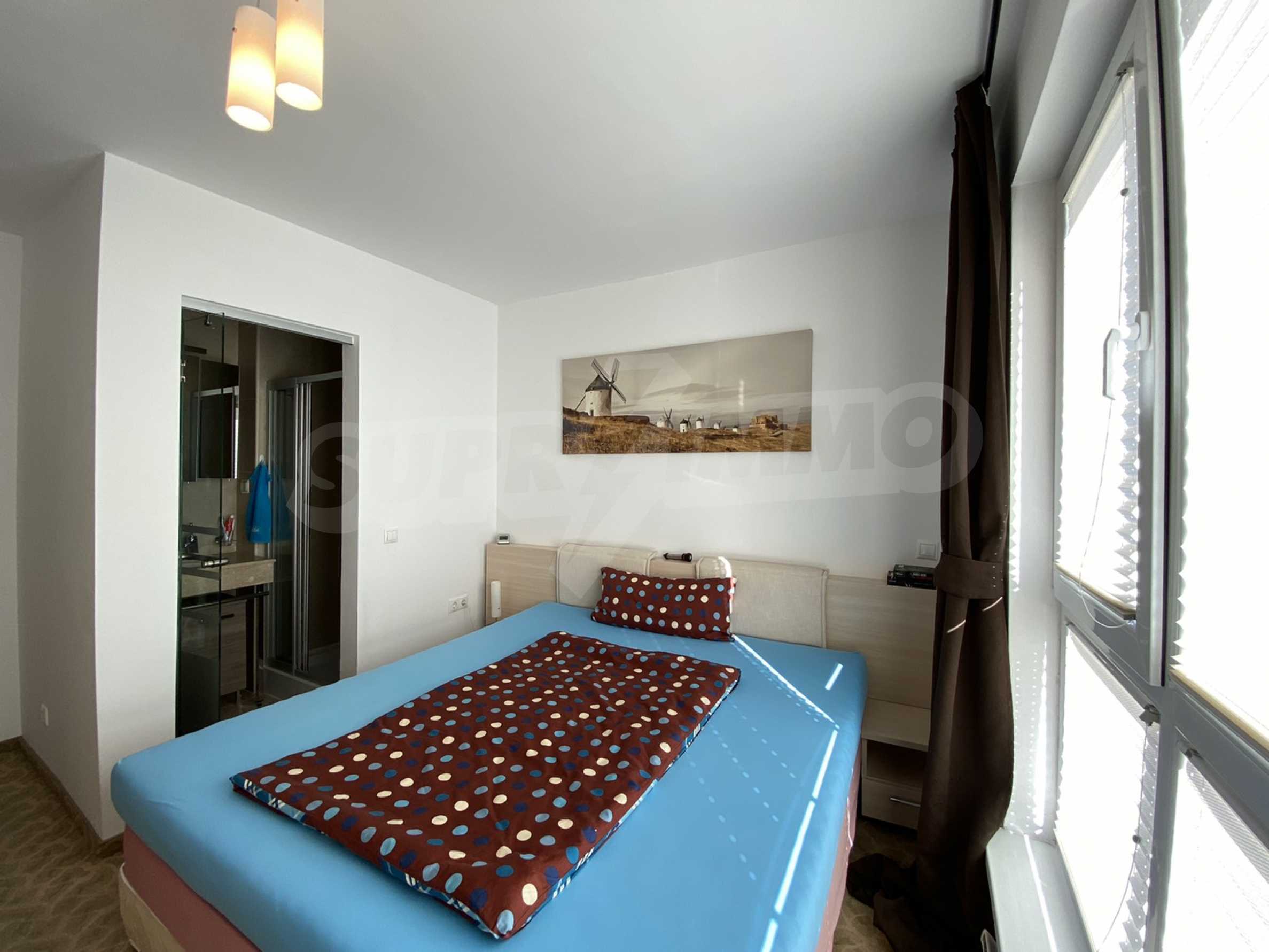 A bright, spacious two-bedroom apartment in modern gated complex St. George Palace, built in Kosherina area in the ski resort Bansko, at the foot of the Pirin mountains. 800 metres from the cable car station and 200 metres from the slopes. The complex offers its guests modern luxury, comfort, tranquility and proximity to the pure and beautiful nature and a range of cultural, architectural and historical attractions and various opportunities for winter and summer sports, SPA treatments, Golf sports.