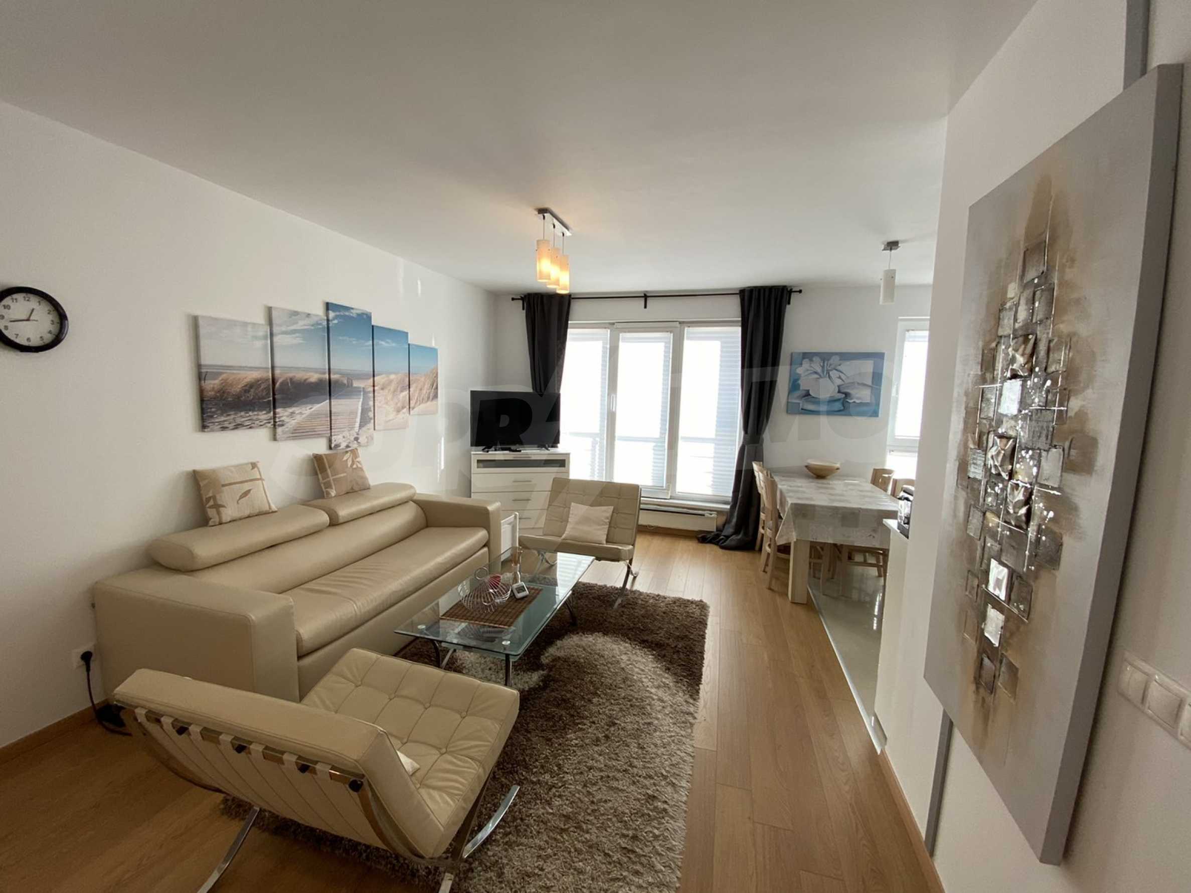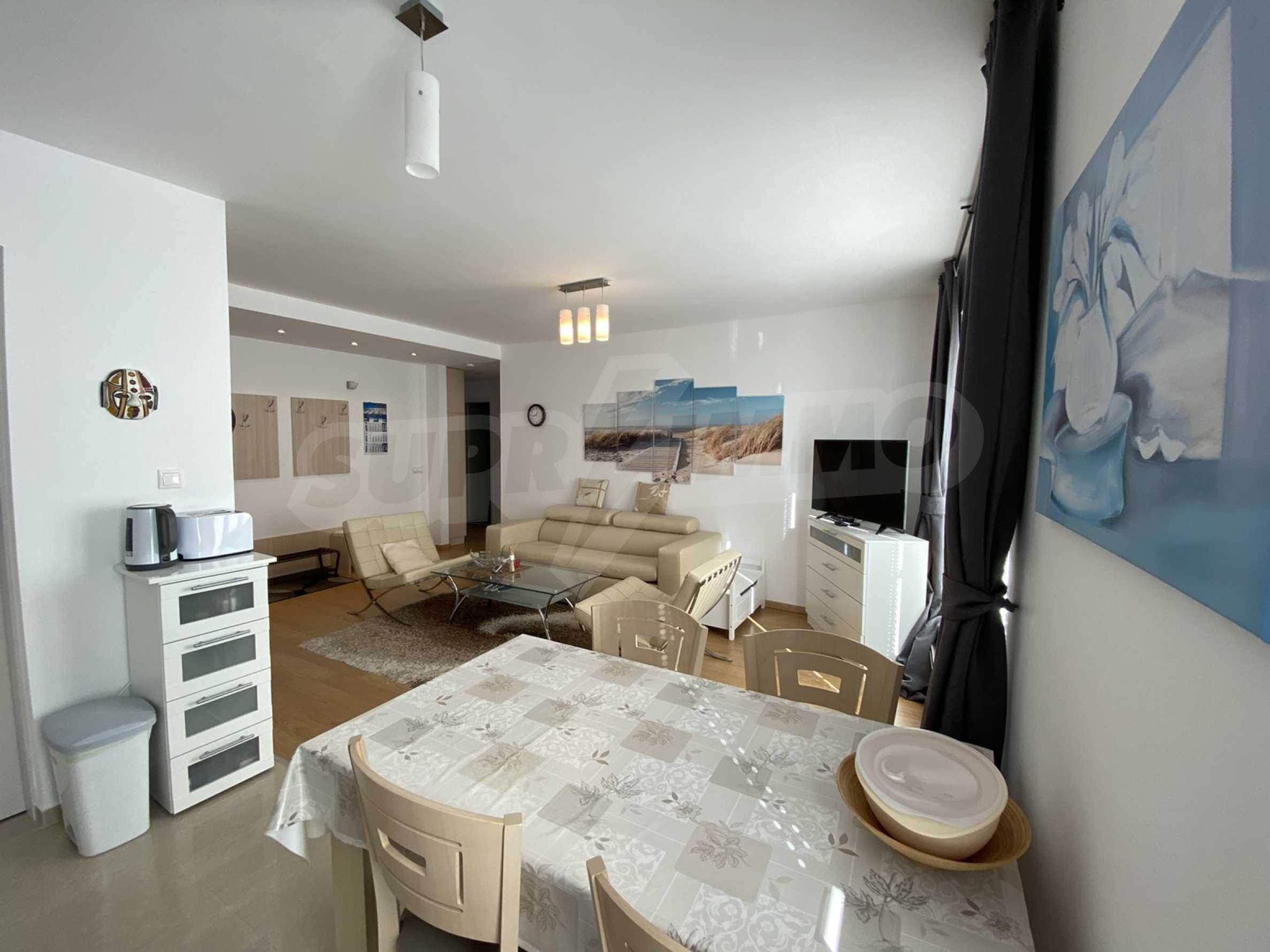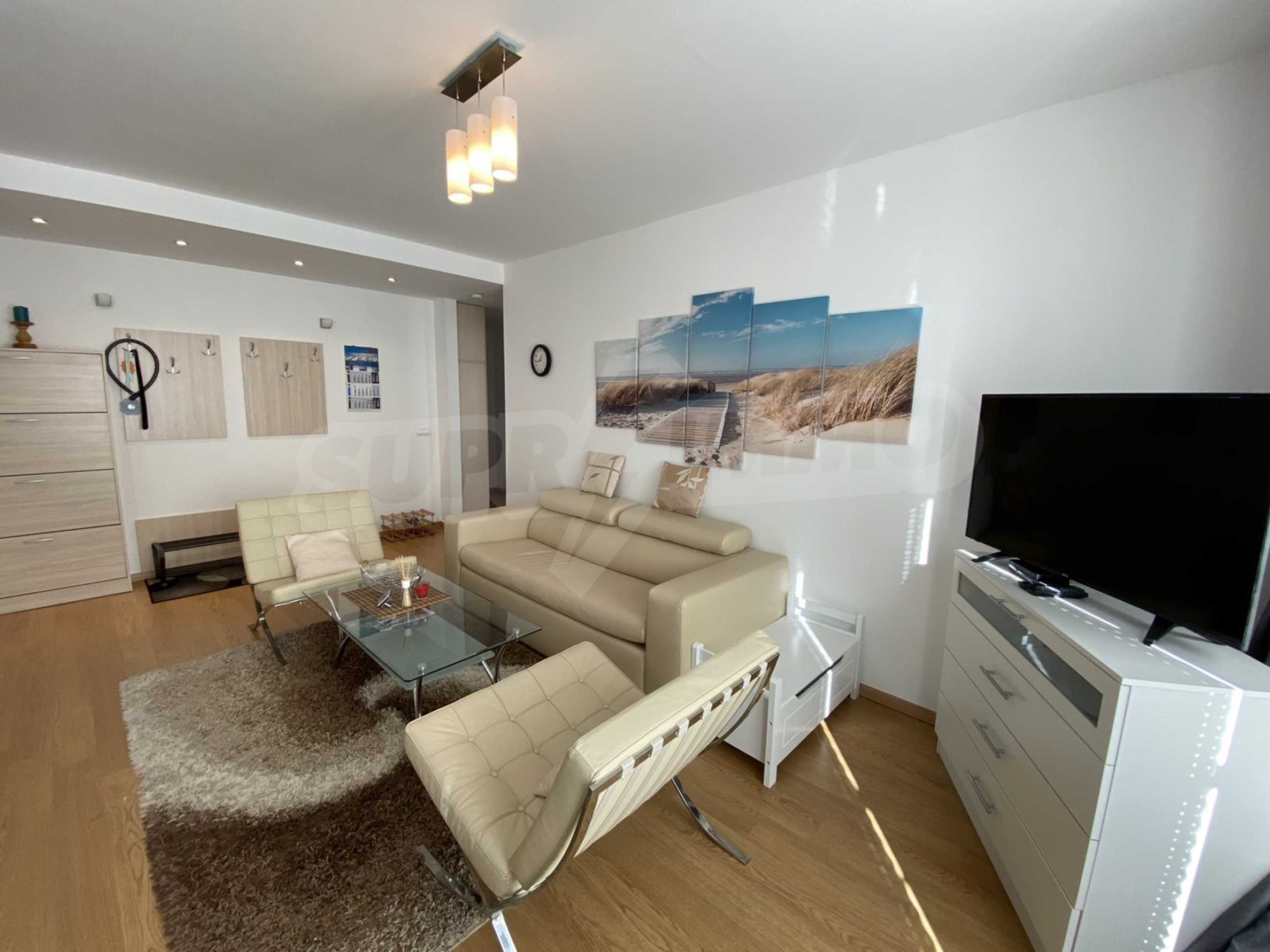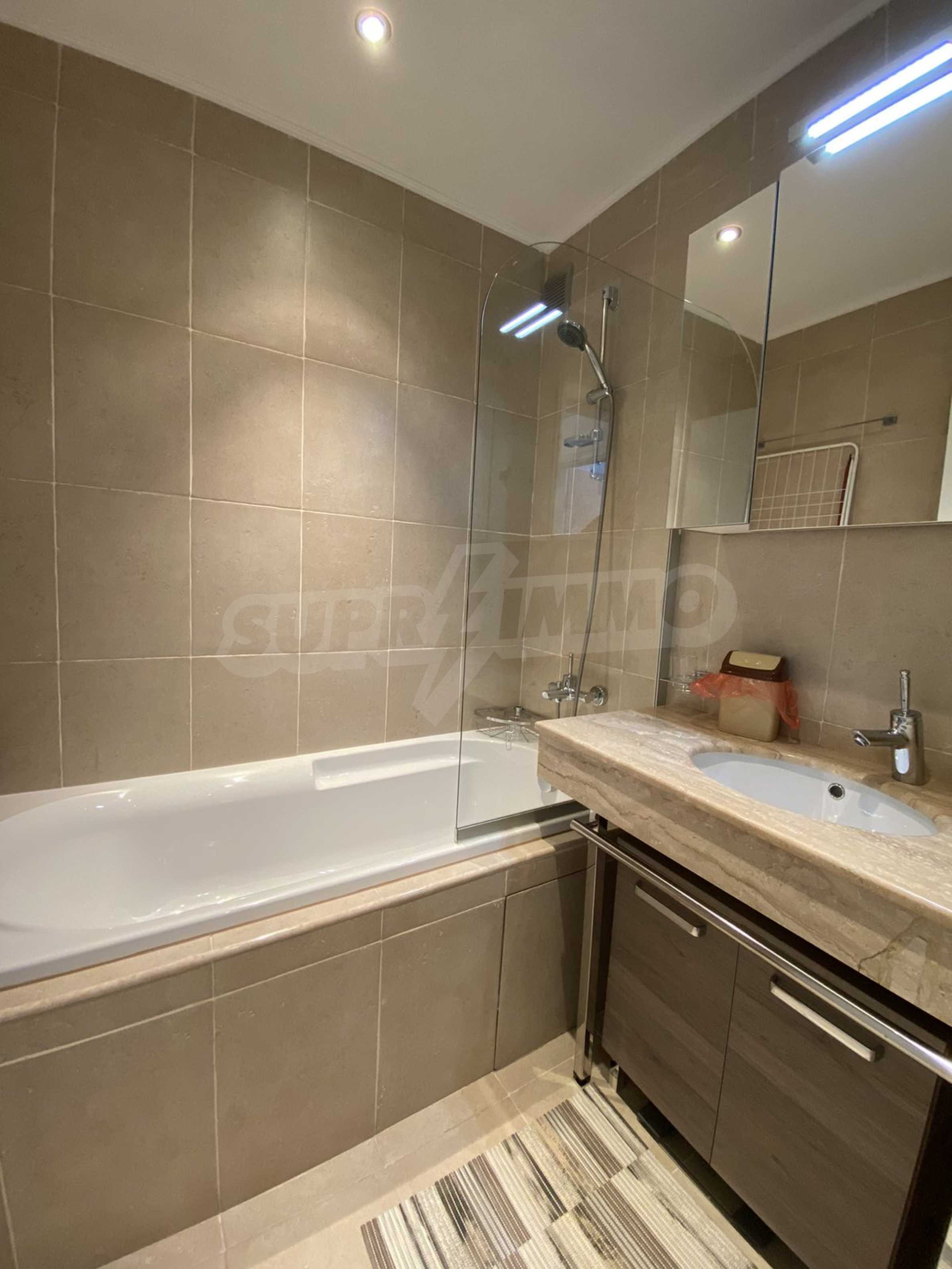 A bright, spacious two-bedroom apartment in modern gated complex St. George Palace, built in Kosherina area in the ski resort Bansko, at the foot of the Pirin mountains. 800 metres from the cable car station and 200 metres from the slopes. The complex offers its guests modern luxury, comfort, tranquility and proximity to the pure and beautiful nature and a range of cultural, architectural and historical attractions and various opportunities for winter and summer sports, SPA treatments, Golf sports.
