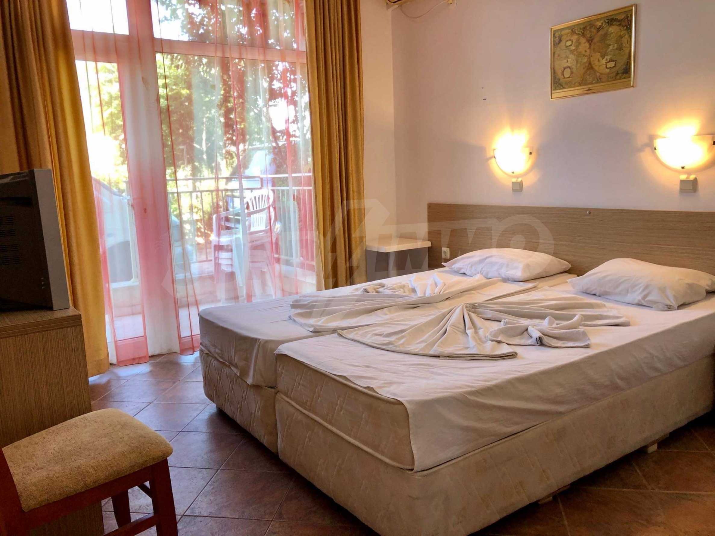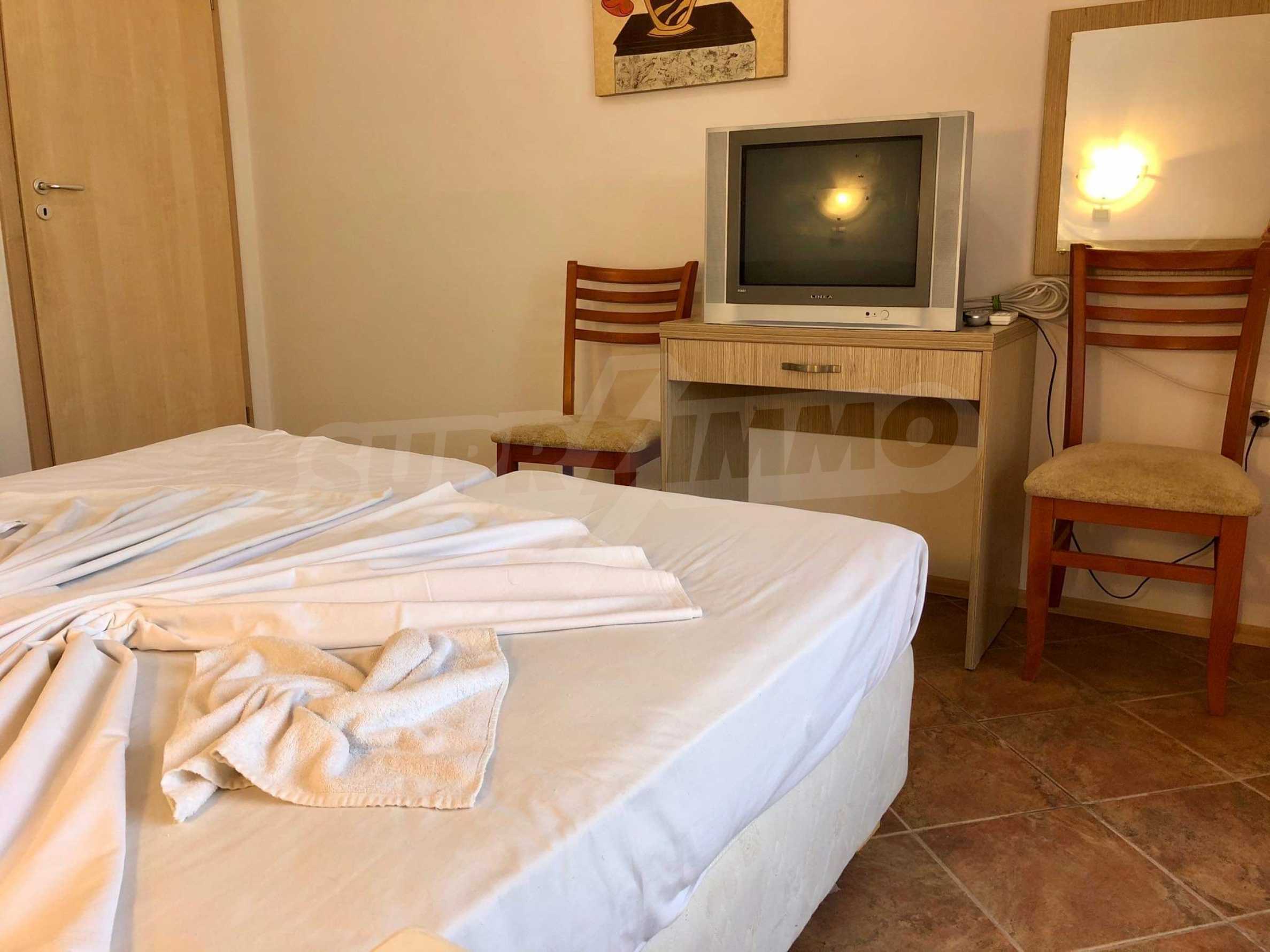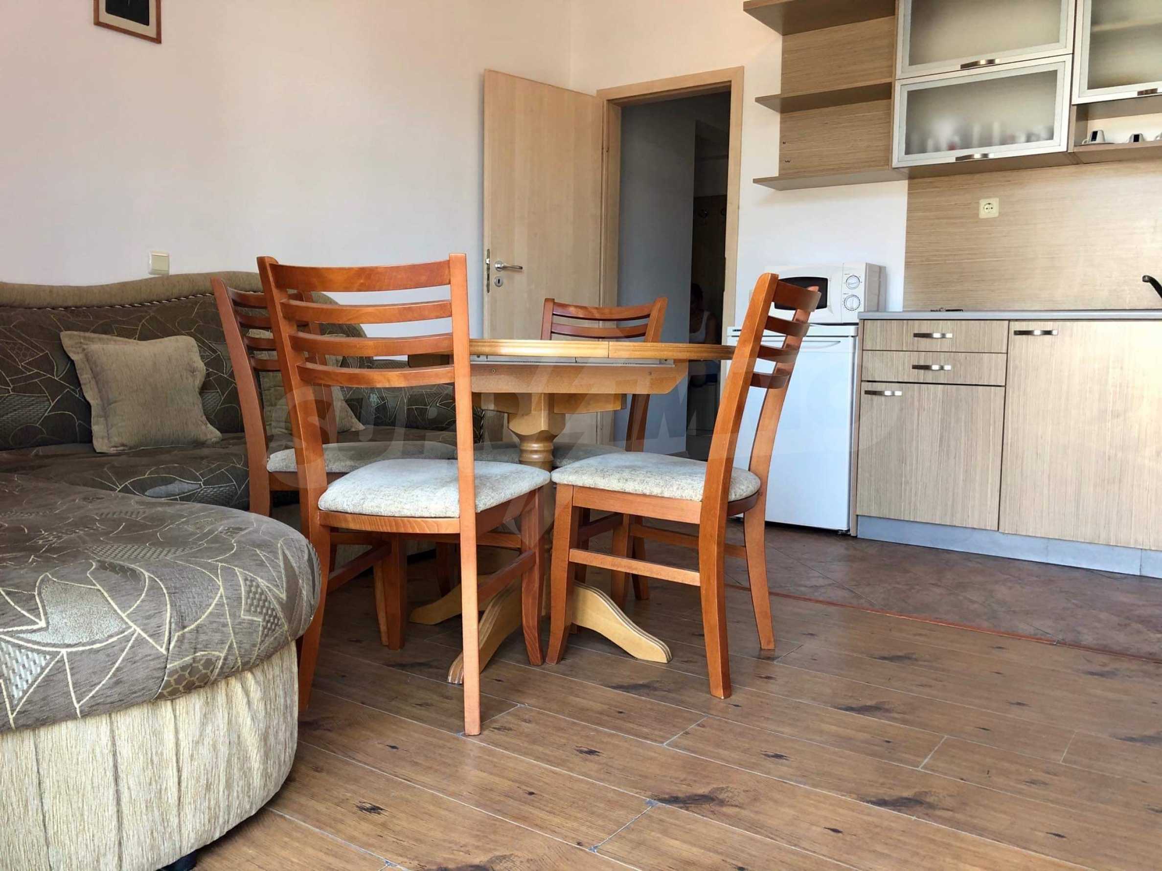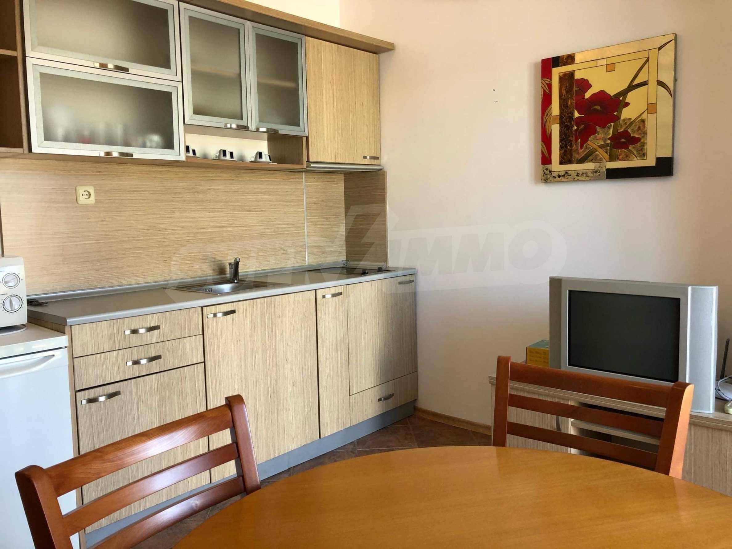 It is located in a modern complex with two large swimming pools and a pool bar, playground and more. In the immediate vicinity is a large store "Mladost", many other shops, cafes and restaurants. The beach is a 10-minute walk from the property.
