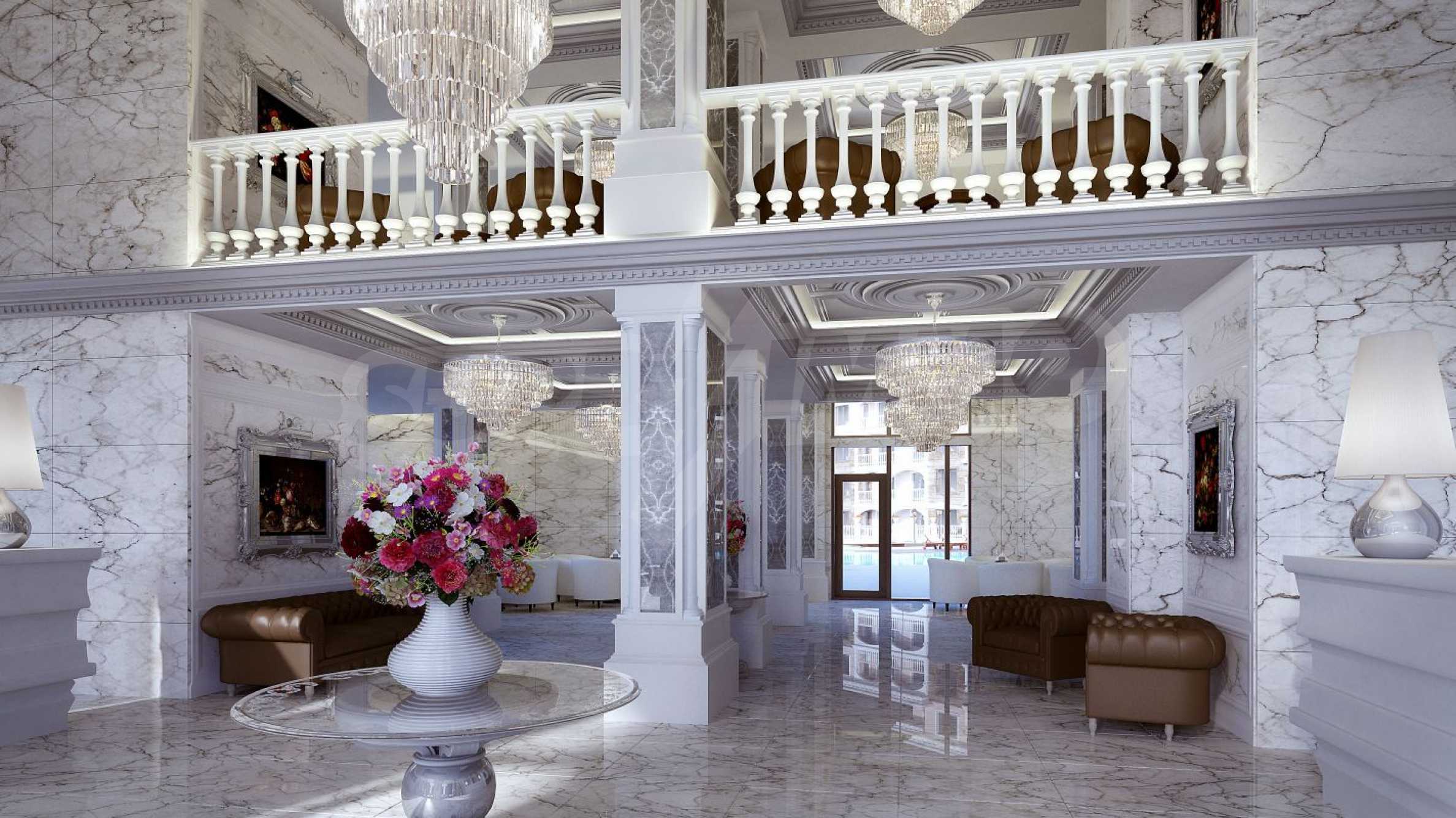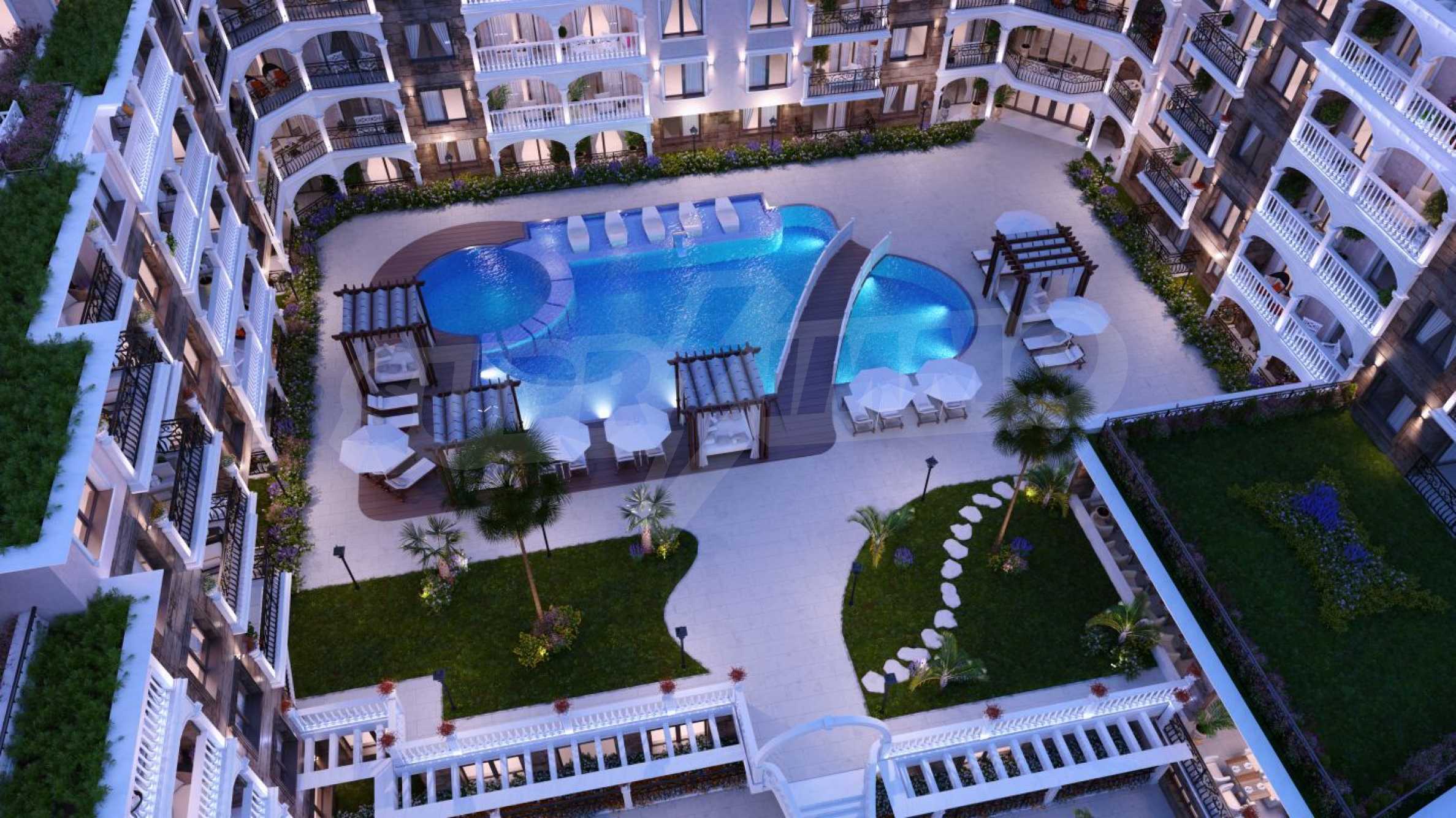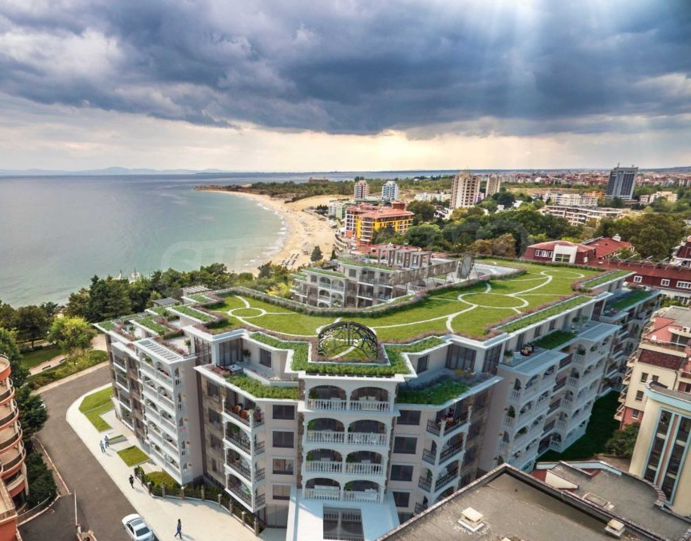 Located in the southern part of the popular resort, the distinctive complex stands out with sophisticated, modern architecture, with classic Mediterranean notes - natural stone, wrought iron elements and balusters, combined with rich landscaping both on the territory and on the roof of the building. The strategic location on the beach provides a remarkable, frontal view of the sea all year round, and the proximity to the city park makes this complex ideal for family living and comfortable recreation with children. The apartments in this complex are suitable for living and rest, as well as for investment.