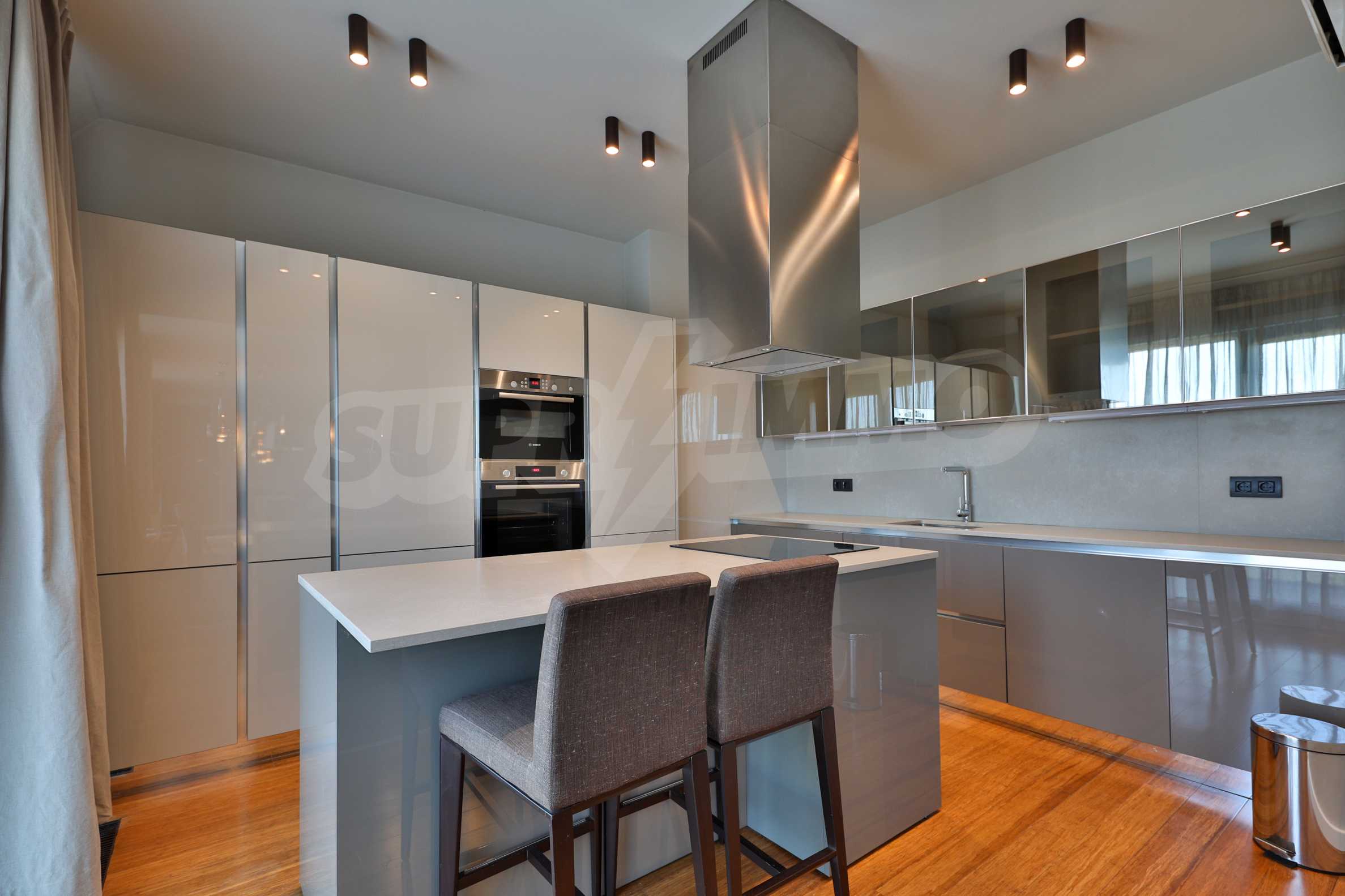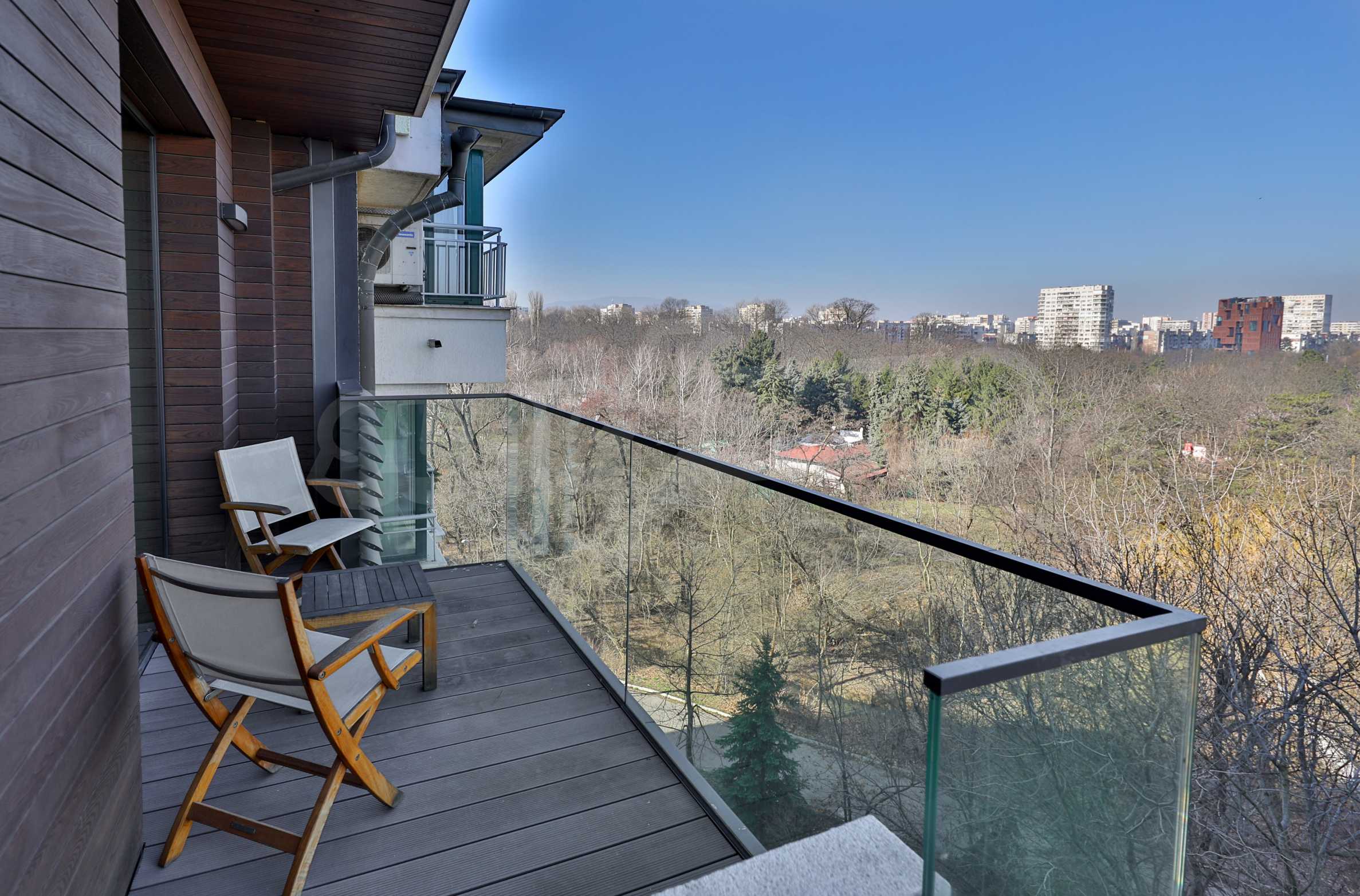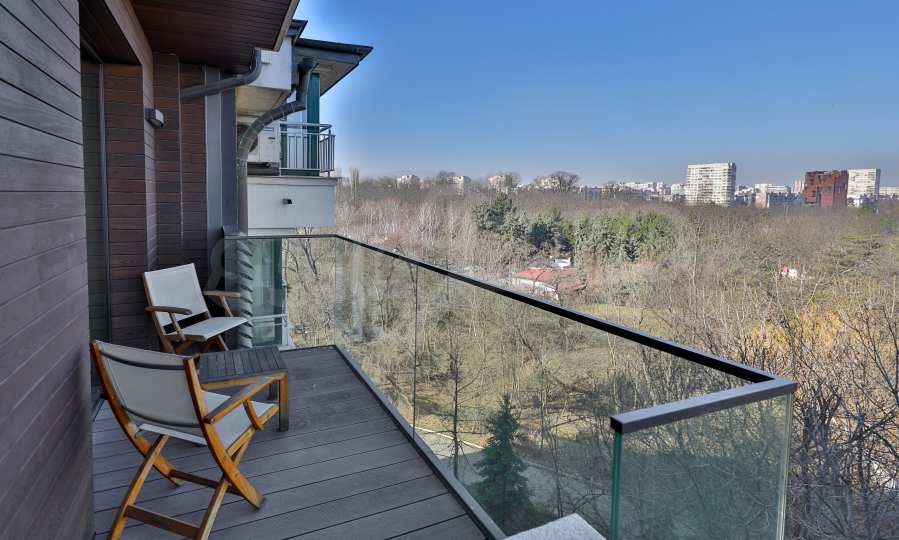 The apartment covers an area of about 180 square meters and has a living room and kitchen, two bedrooms, study, two balconies, laundry room, closet, closet and three bathrooms. The beautiful furniture in natural colors gives a feeling of calm and coziness. The master bedroom is facing east and has its own bathroom and separate closet. The cabinet is bright, fully furnished and easily adaptable for a guest bedroom or a third bedroom. In the living room, in addition to the usual sofas and dining table, you will find a second seating area with two extremely comfortable Italian armchairs located in front of the built-in decorative fireplace. The balcony offers an incredible panoramic view of South Park, changing its colors over the seasons. The kitchen is equipped with all necessary for your culinary adventures electrical appliances from leading world brands. This exclusive home offers you not only luxurious furniture, but also incredible comfort amidst the greenery of a park and just minutes from the city center.
