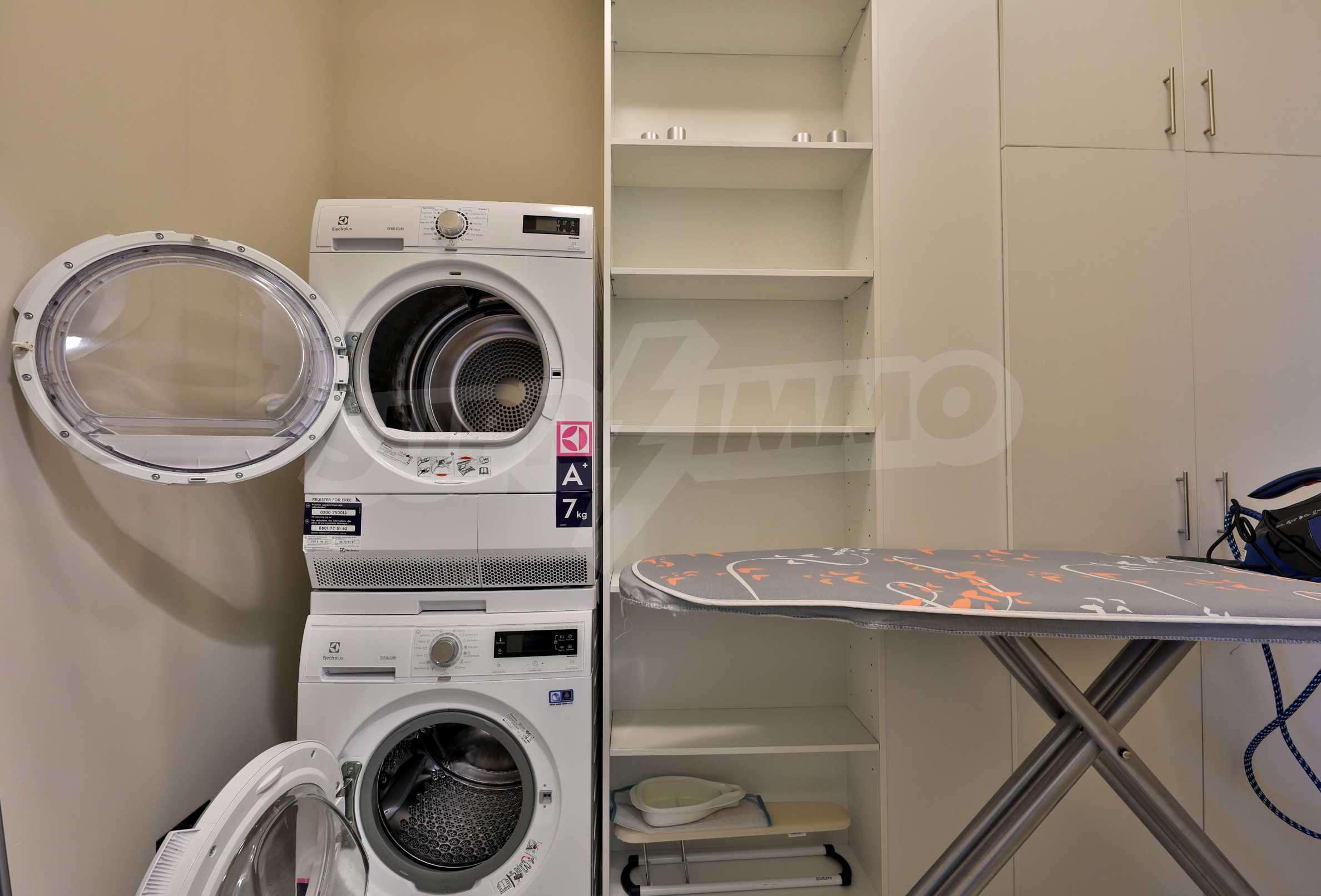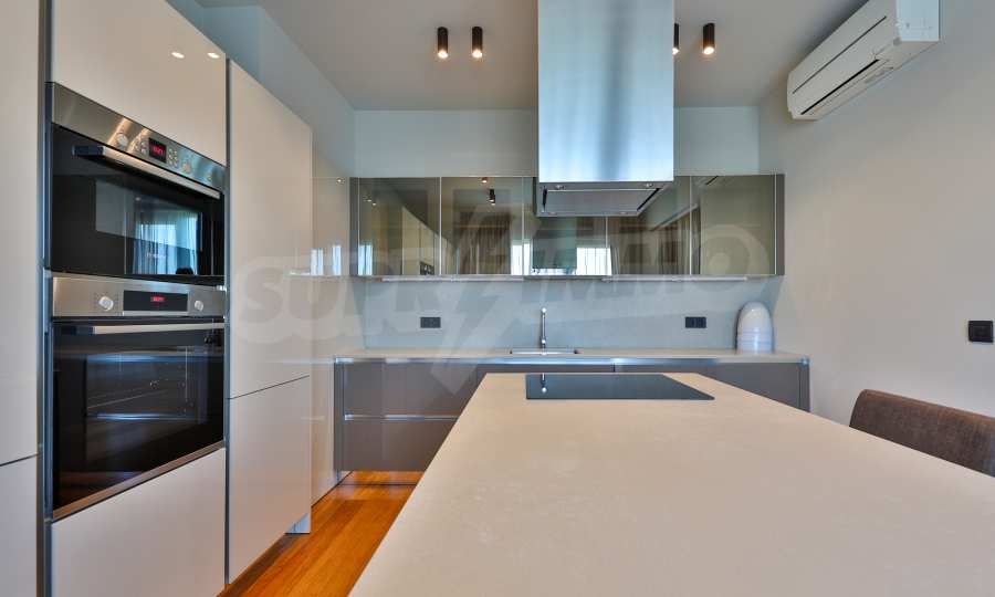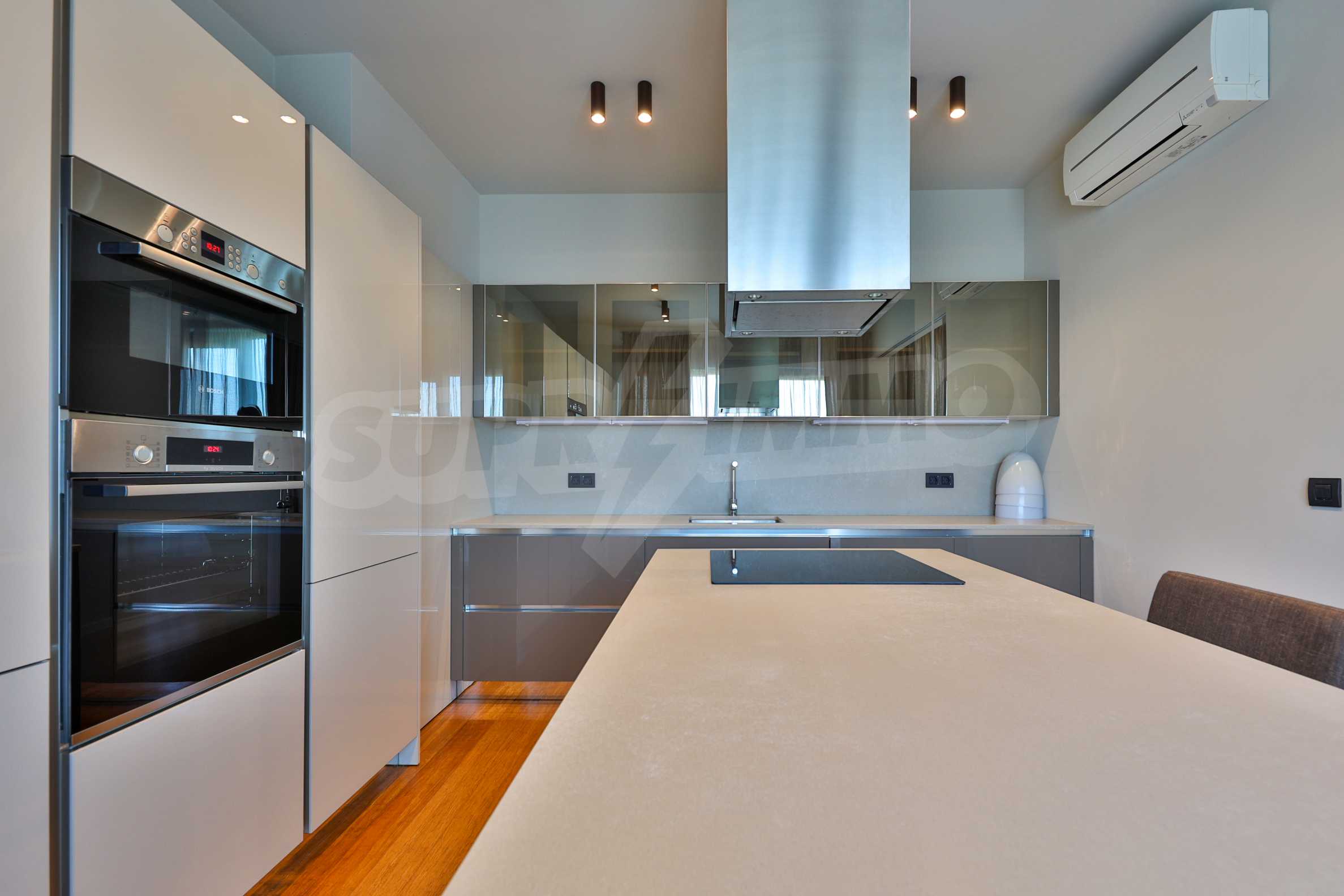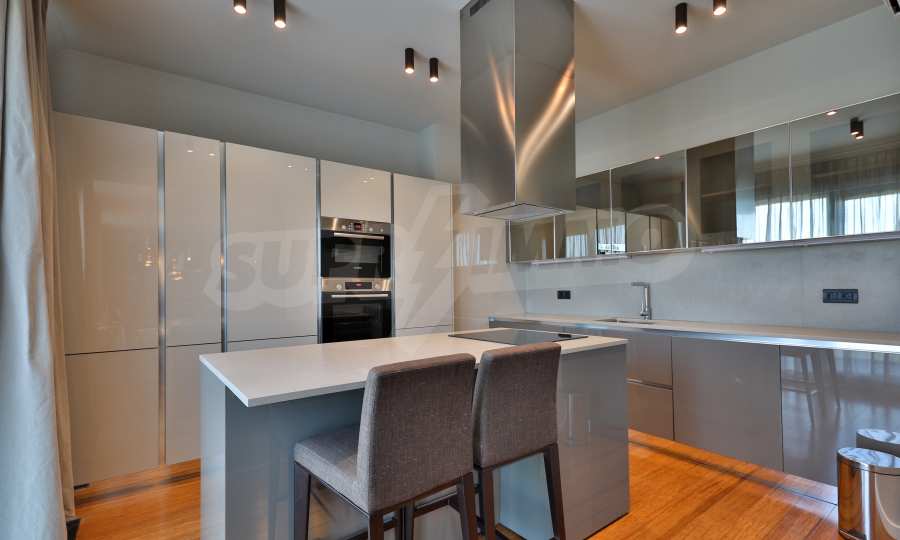 The apartment covers an area of about 180 square meters and has a living room and kitchen, two bedrooms, study, two balconies, laundry room, closet, closet and three bathrooms. The beautiful furniture in natural colors gives a feeling of calm and coziness. The master bedroom is facing east and has its own bathroom and separate closet. The cabinet is bright, fully furnished and easily adaptable for a guest bedroom or a third bedroom. In the living room, in addition to the usual sofas and dining table, you will find a second seating area with two extremely comfortable Italian armchairs located in front of the built-in decorative fireplace. The balcony offers an incredible panoramic view of South Park, changing its colors over the seasons. The kitchen is equipped with all necessary for your culinary adventures electrical appliances from leading world brands. This exclusive home offers you not only luxurious furniture, but also incredible comfort amidst the greenery of a park and just minutes from the city center.