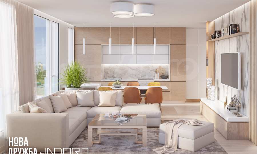 There are many kindergartens, schools and large chain stores in the area. In the neighborhood are the Kaufland supermarket, The Mall, Metro hypermarket, Inter Expo Center, Arena Armeec hall. The neighborhood has a well-developed road infrastructure and great bike lanes. In the neighborhood is Tsarigradsko Shosse Blvd., with which there are 3 road connections - through Christopher Columbus Blvd., through Copenhagen Blvd. and Dimitar Peshev St. In the central part of the neighborhood is a lake with a park, which in summer is a convenient place for recreation and walks.