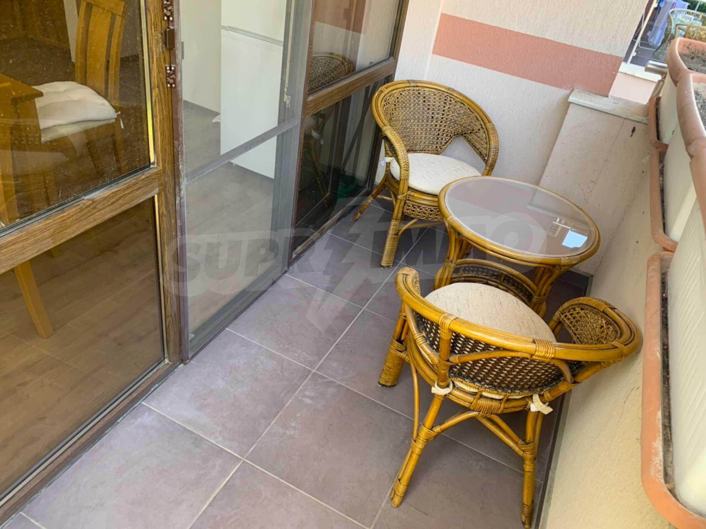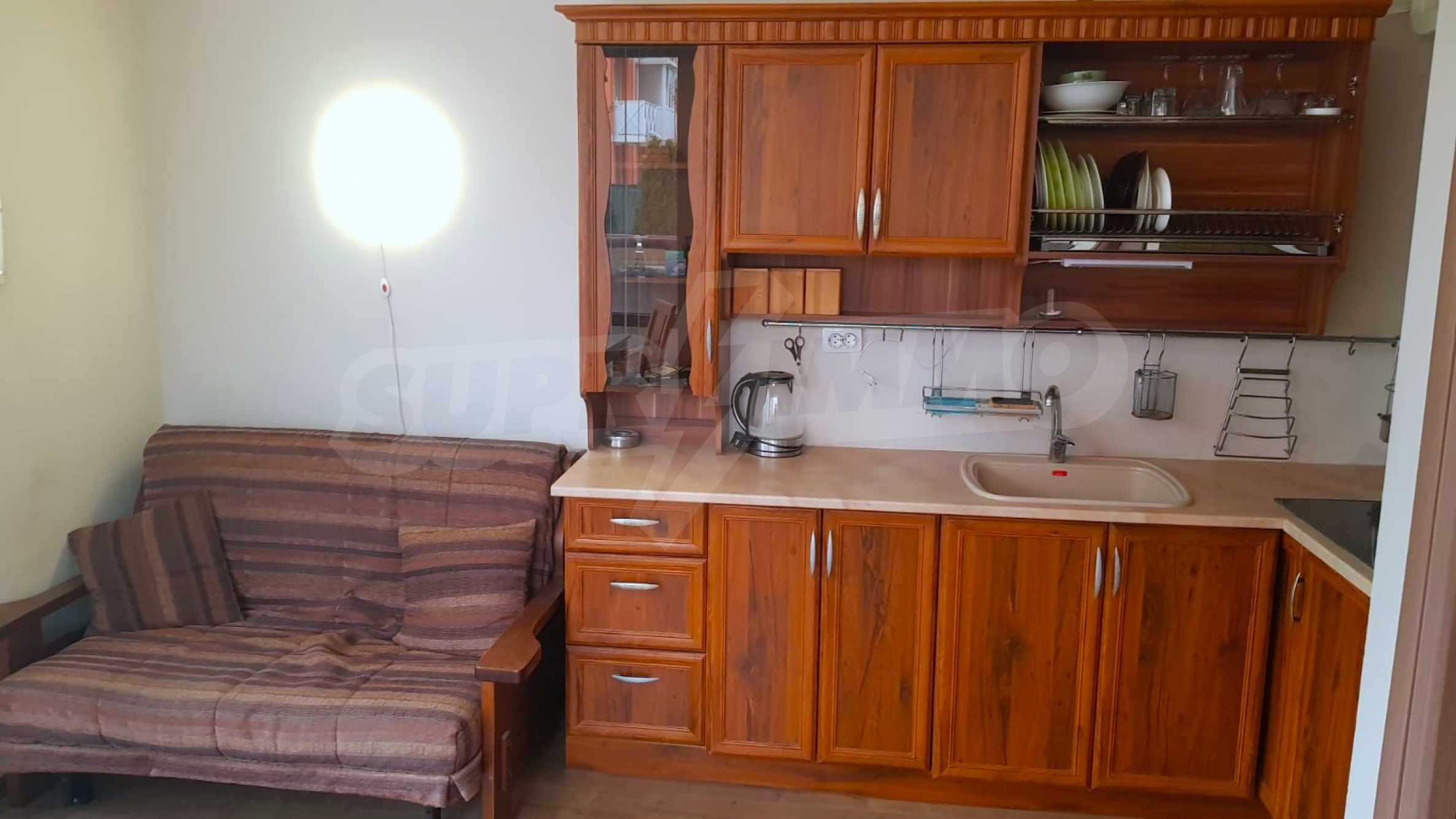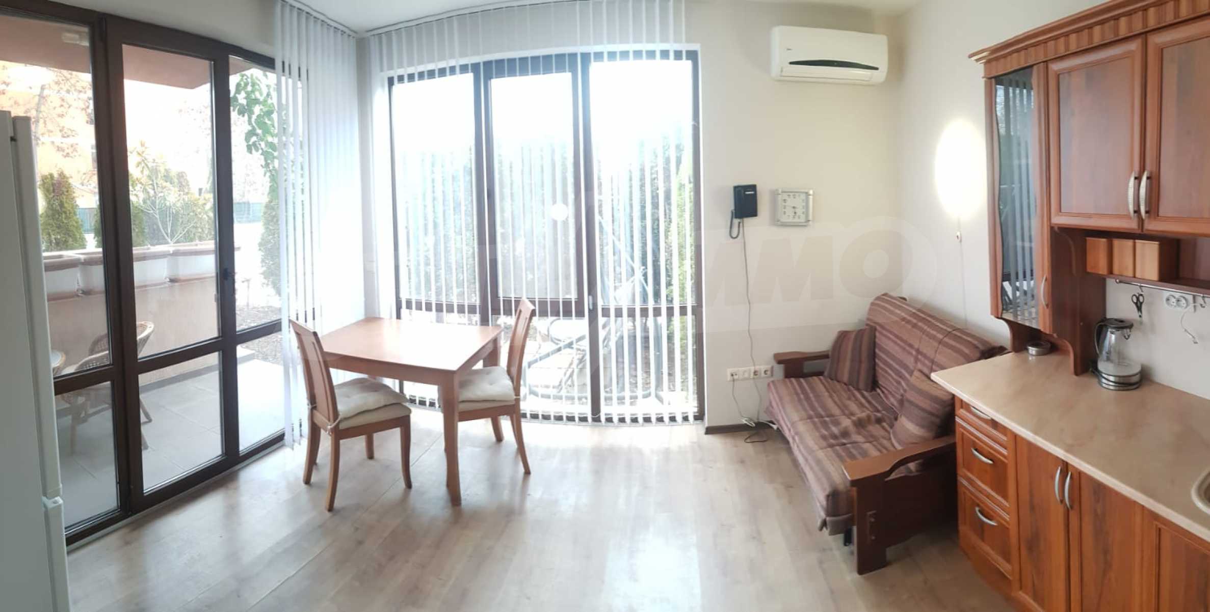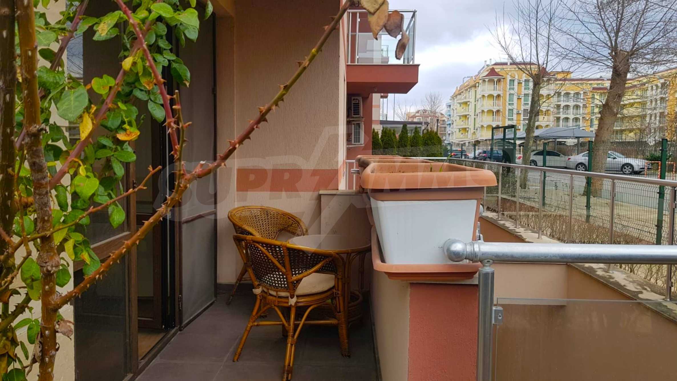 We present for sale a ground floor, fully furnished one-bedroom property with an area of 55 m2, in an attractive complex with amenities, 5 minutes from the beach of Sunny Beach.