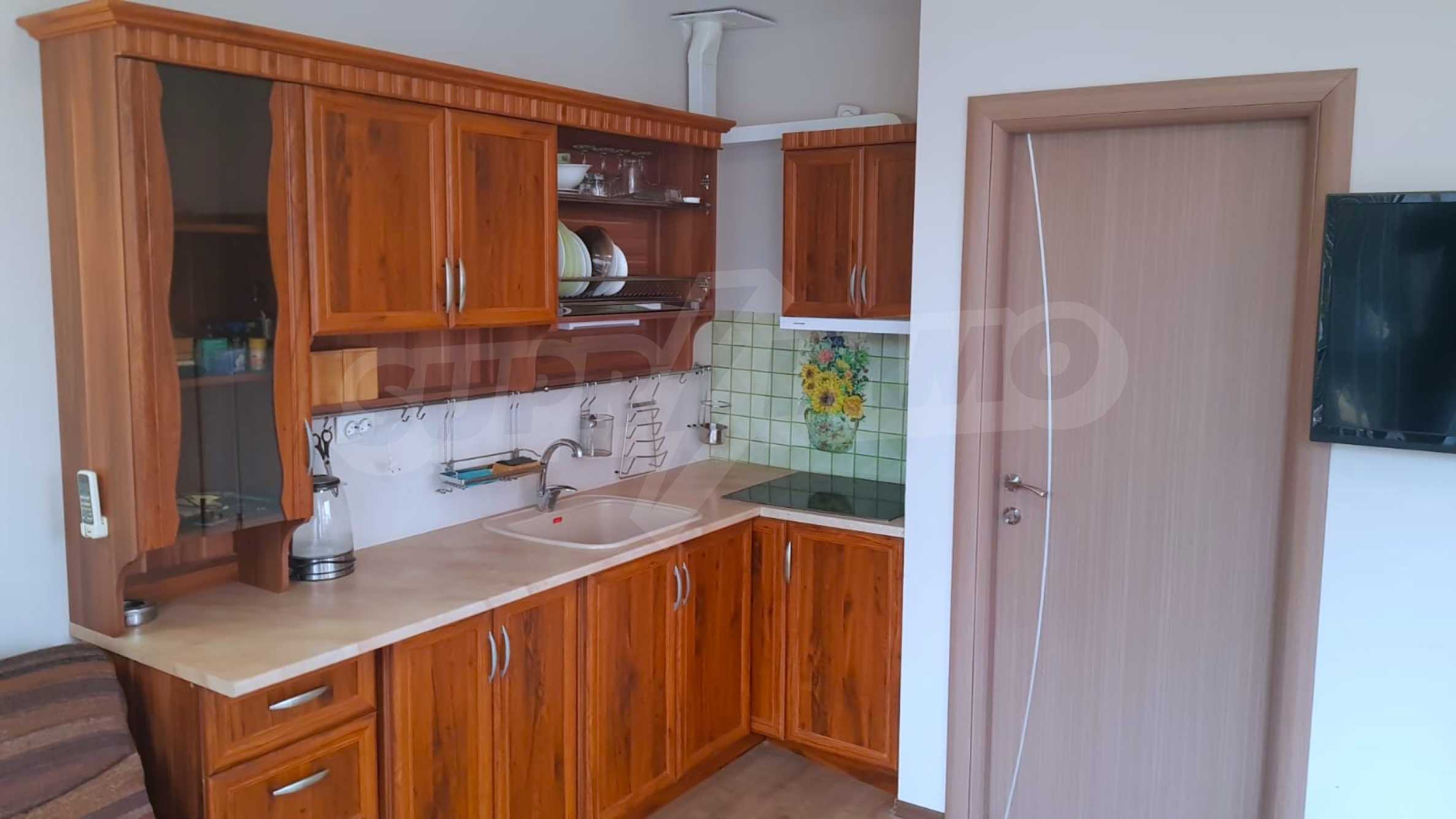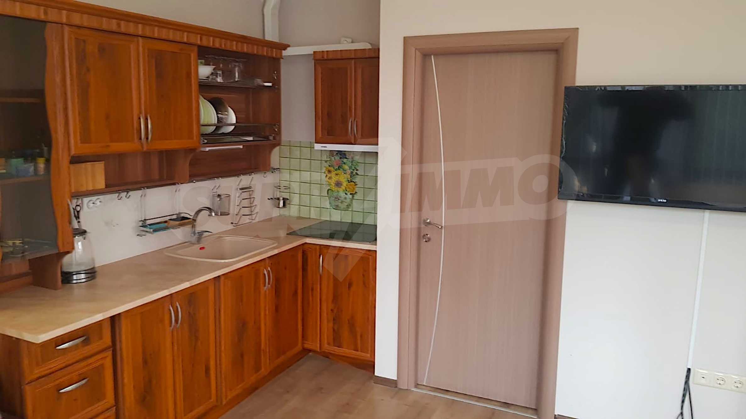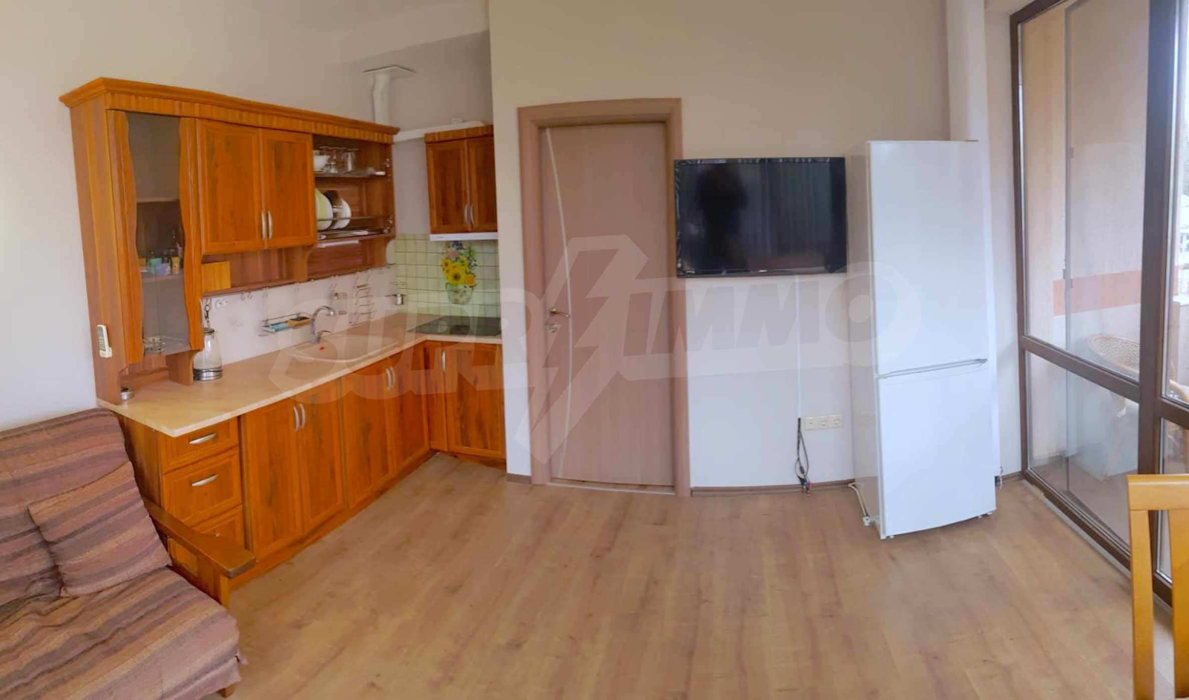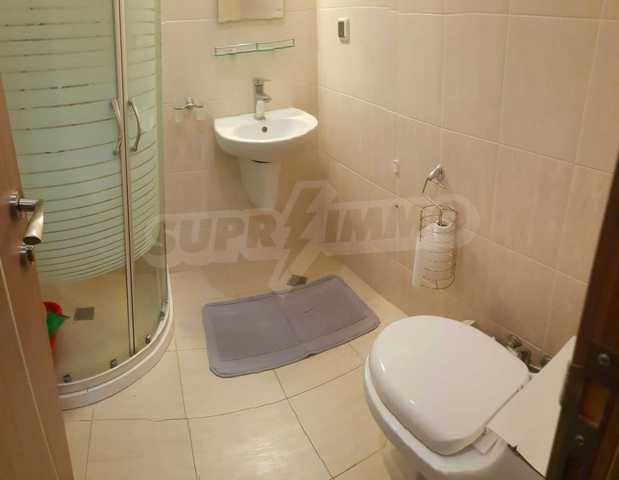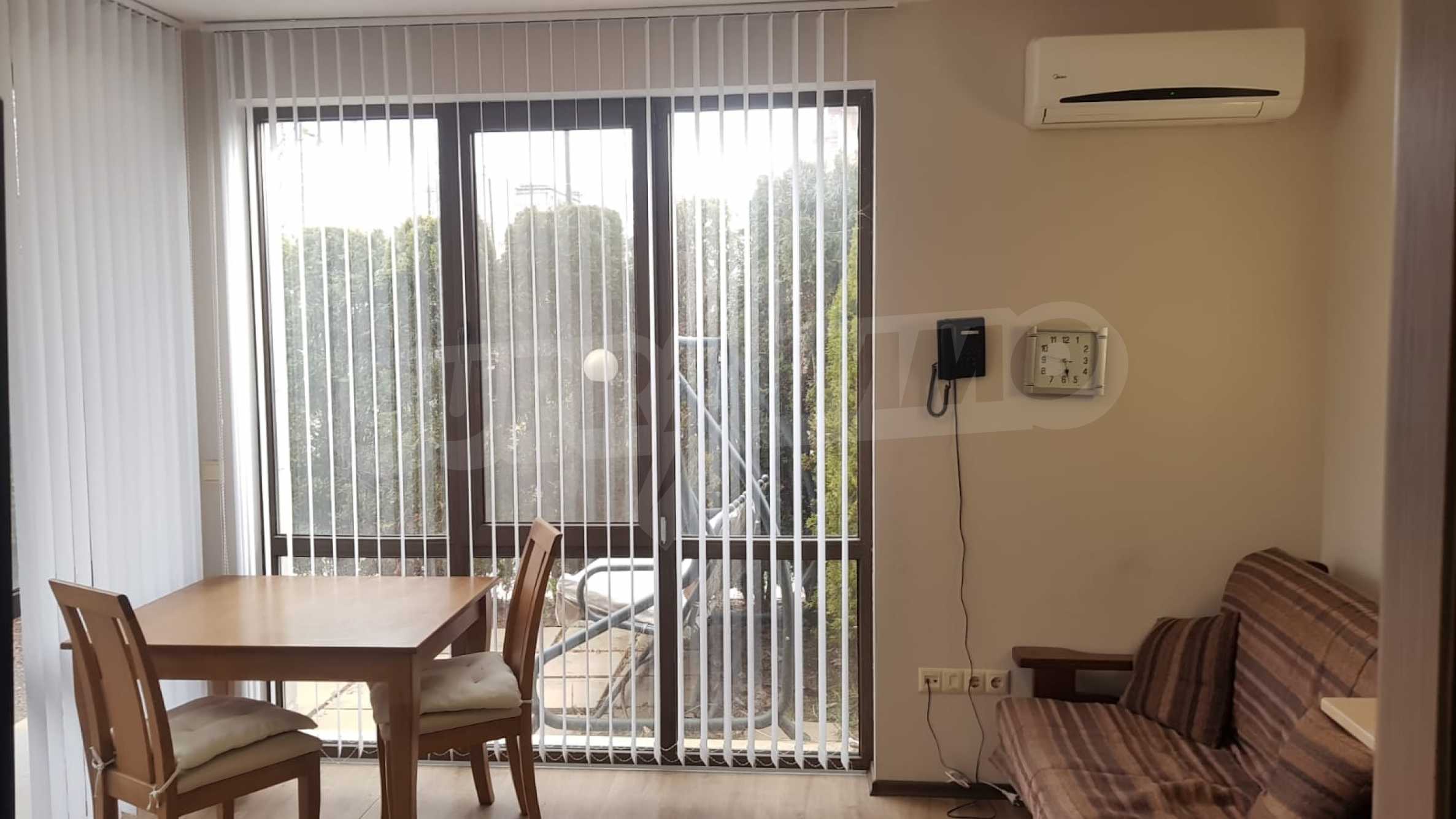 We present for sale a ground floor, fully furnished one-bedroom property with an area of 55 m2, in an attractive complex with amenities, 5 minutes from the beach of Sunny Beach.
