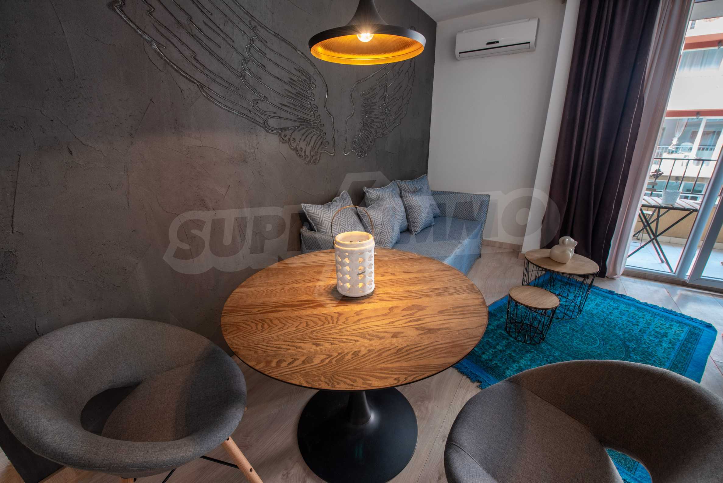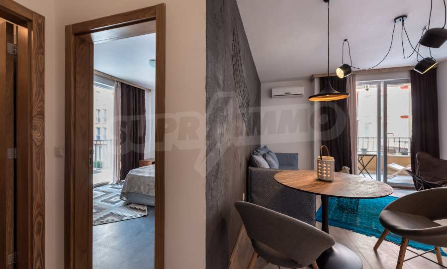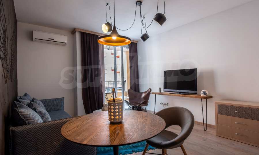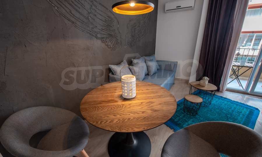 Apartment "Summer-3" is completely renovated and equipped with new designer furniture. It is suitable both for a stay during the summer season and for permanent living. All rooms are extremely bright, thanks to the French windows. Air conditioners are installed in the bedroom and the living room. The terrace of the apartment is functional and overlooks the pool.