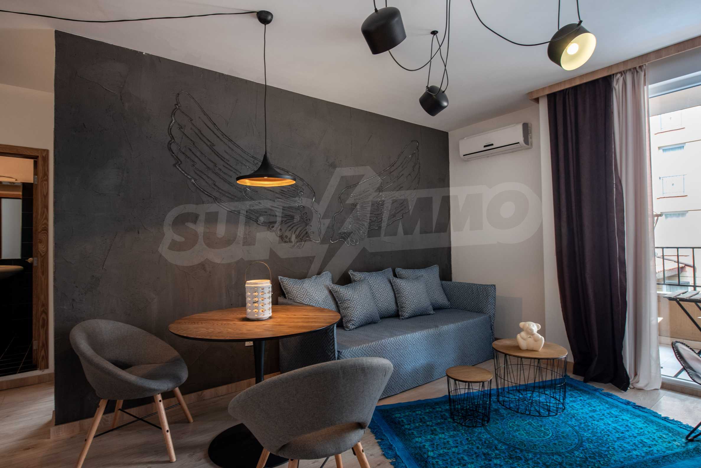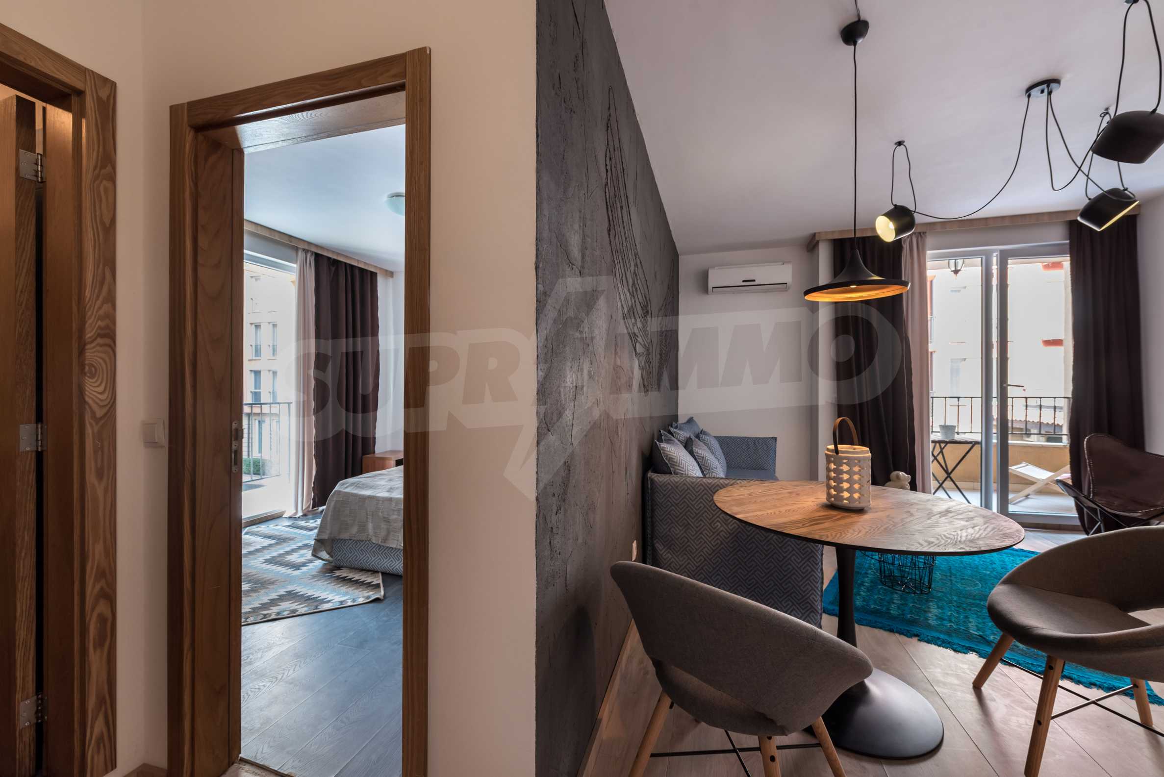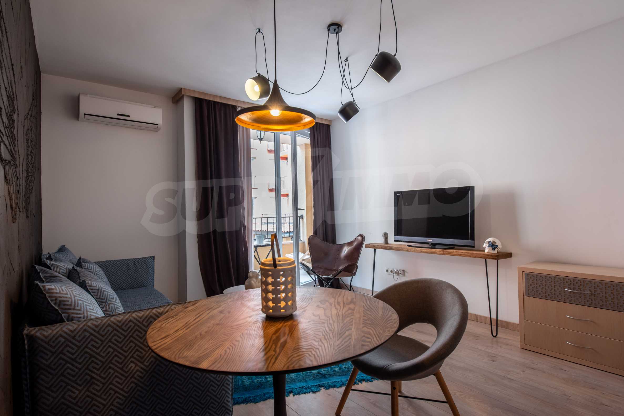 Apartment "Summer-3" is completely renovated and equipped with new designer furniture. It is suitable both for a stay during the summer season and for permanent living. All rooms are extremely bright, thanks to the French windows. Air conditioners are installed in the bedroom and the living room. The terrace of the apartment is functional and overlooks the pool.