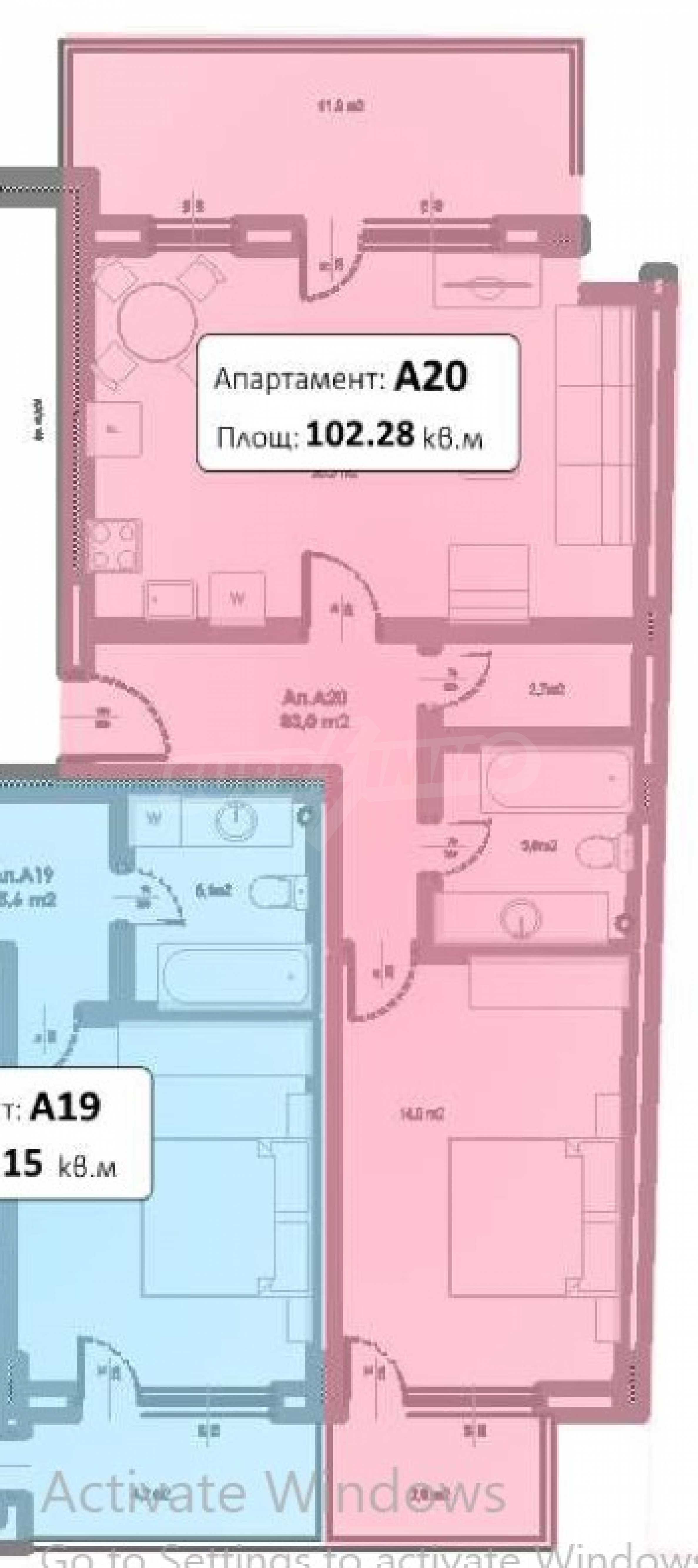 The apartment is located on the 5th floor and has a total area of 102.28 m2. (net area 83.00 m2.).