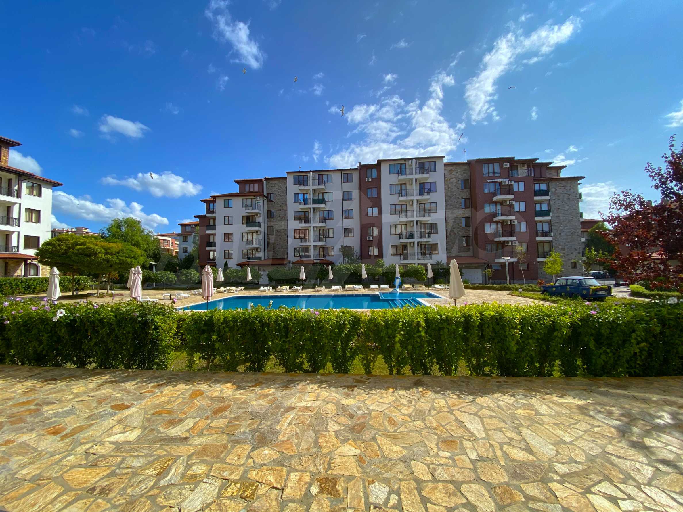 The complex is the latest project, part of the popular mini-resort of buildings with swimming pools and amenities, and future owners of this property will be able to use both the amenities of the new building and the entire infrastructure of the mini-resort.