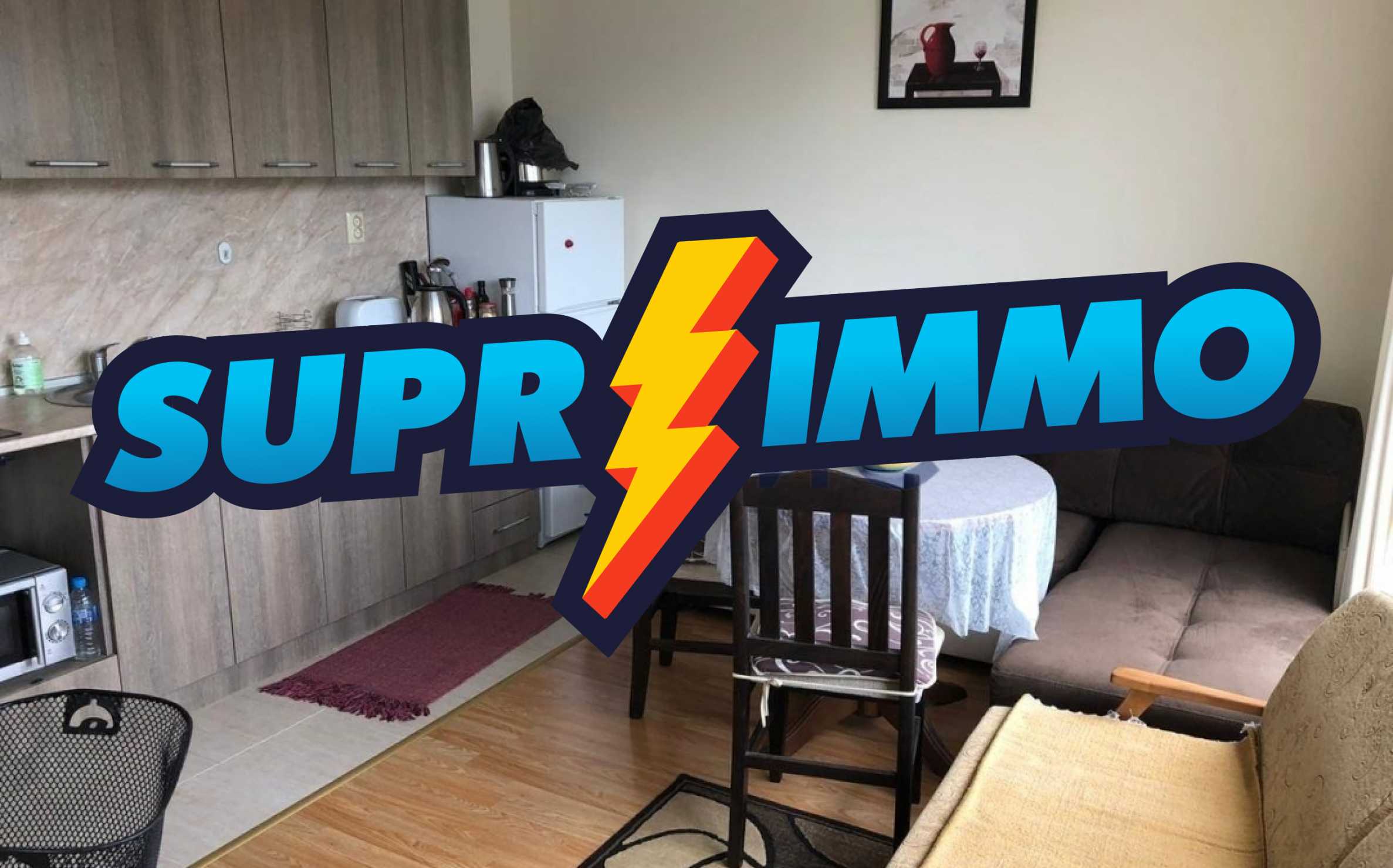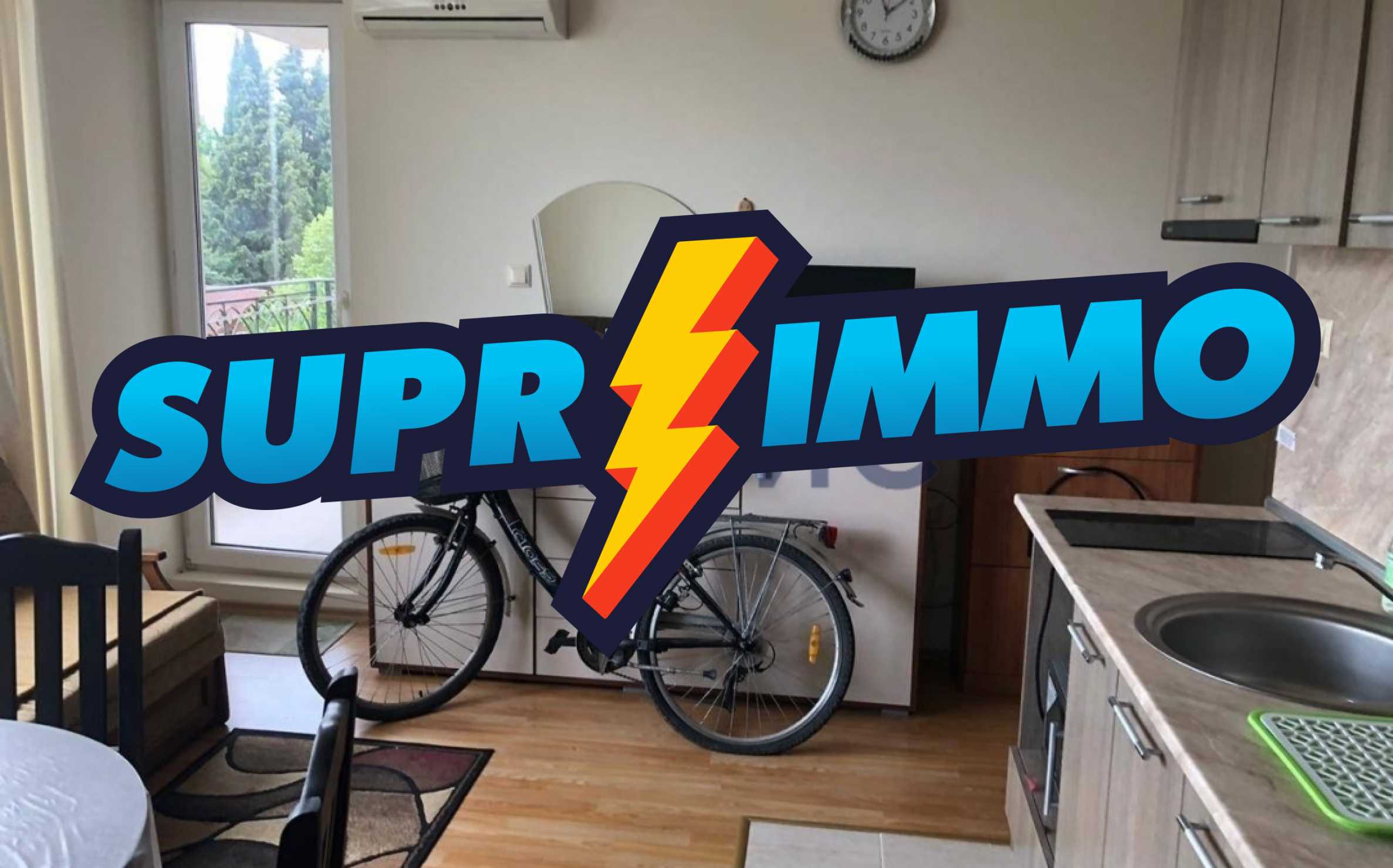 Both rooms are fully furnished with all necessary furniture. In the living room there is a kitchen set, a dining group, a sofa, an additional folding sofa, a TV stand and the TV itself. The bedroom has a large roomy wardrobe, a large bed with bedside furniture and a chest of drawers.