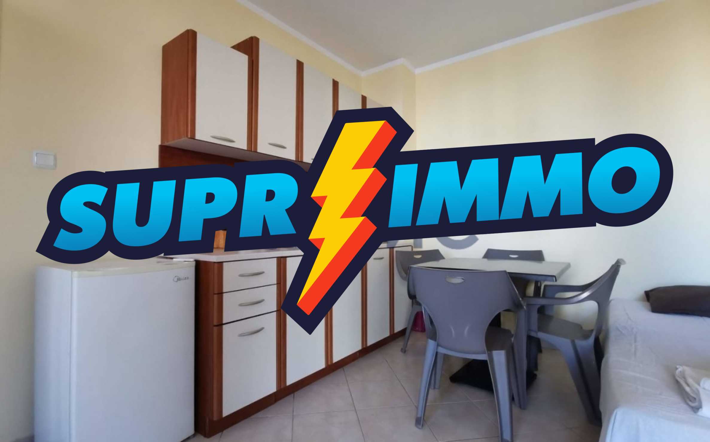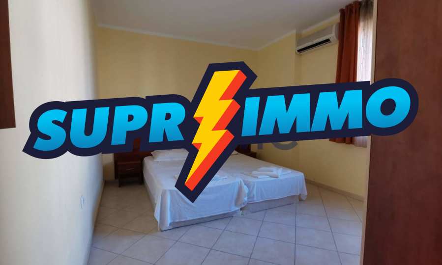 This is a modern complex with a closed, protected area. There is a pool with sun loungers and a cocktail bar.