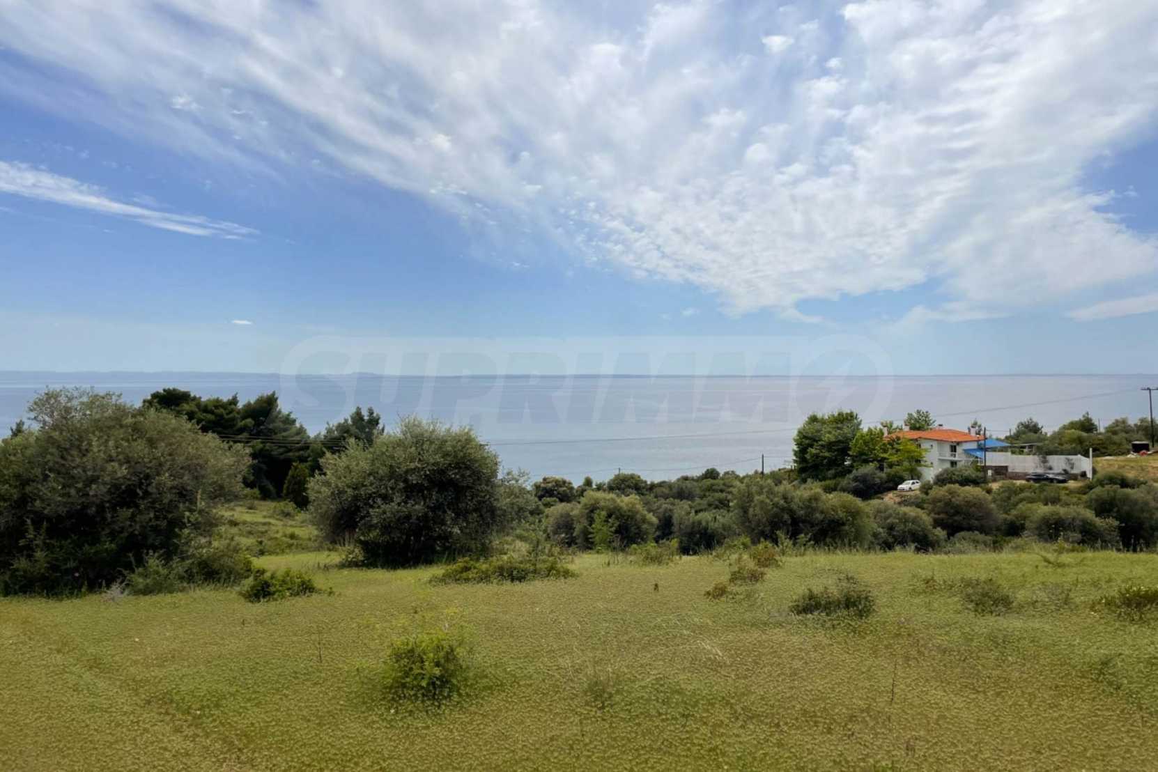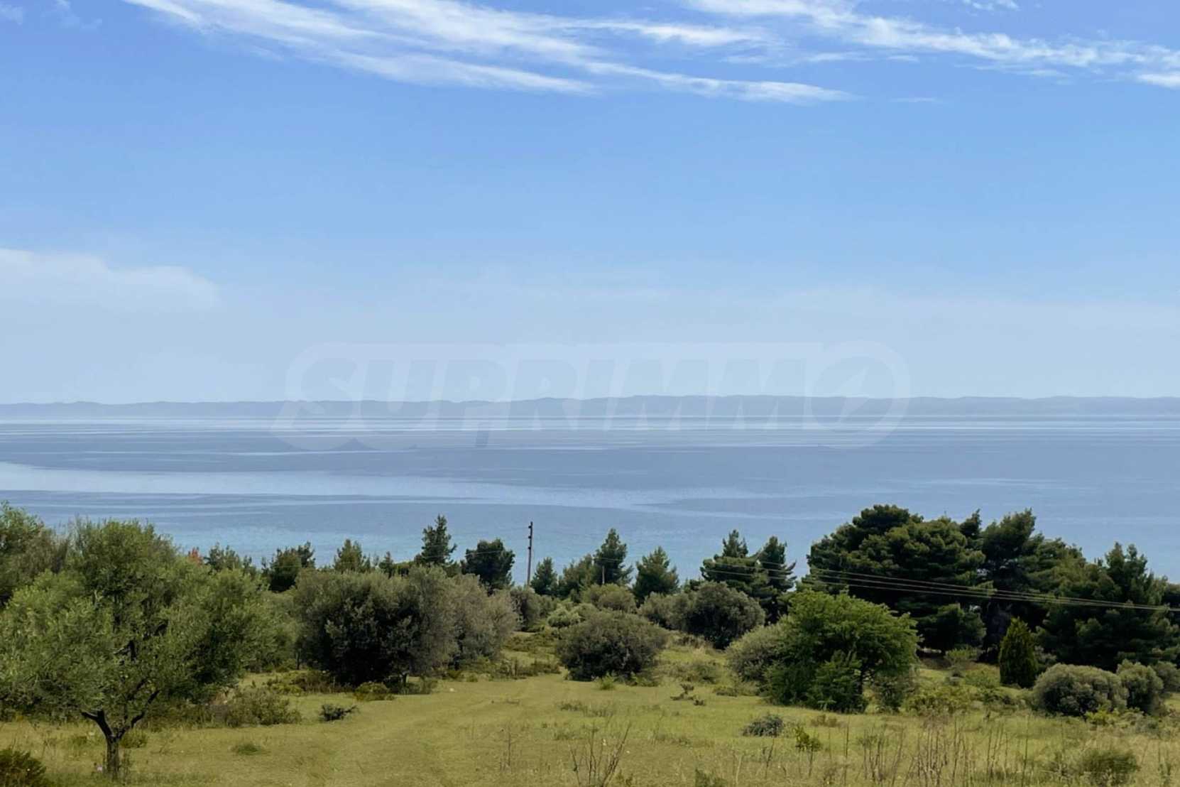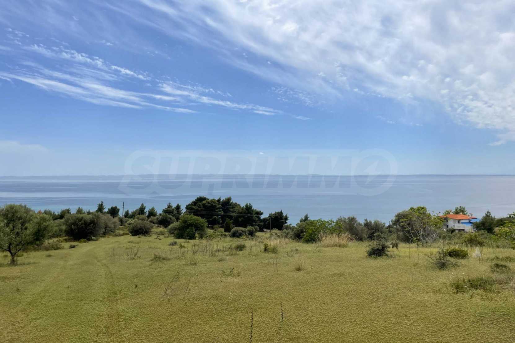 Excellent property, first on the sea, with unique, panoramic view and with a western orientation. It is consisted of two perfections and builds 400 m². It is 2 km away from the center of the village. It is offered for the construction of houses and the construction of a detached house.