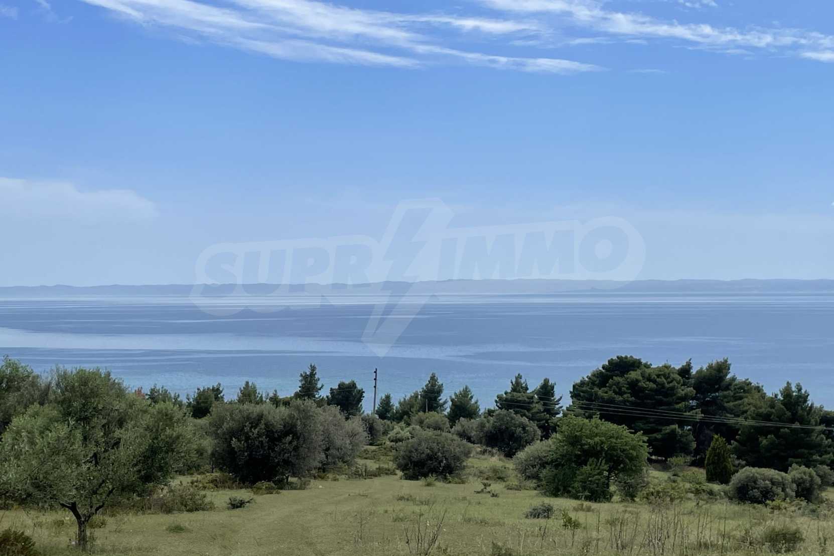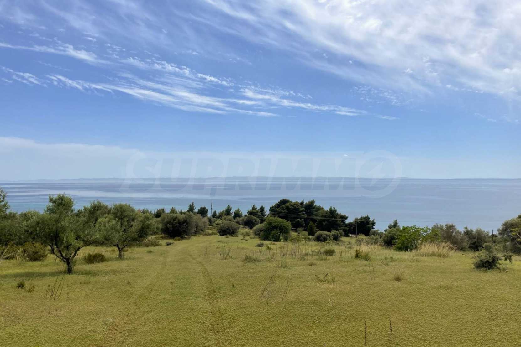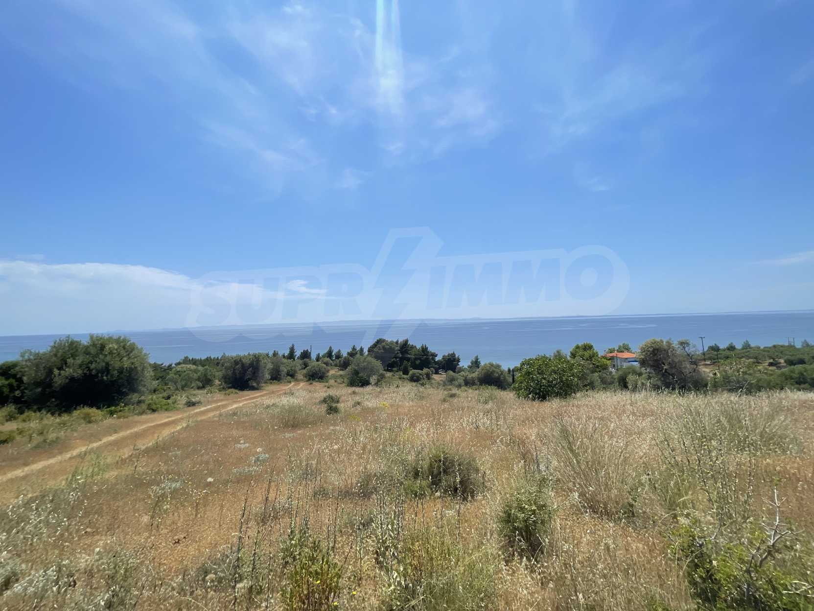 Excellent property, first on the sea, with unique, panoramic view and with a western orientation. It is consisted of two perfections and builds 400 m². It is 2 km away from the center of the village. It is offered for the construction of houses and the construction of a detached house.