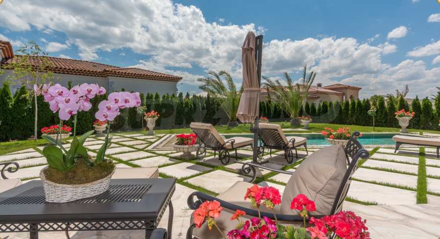 The complex is situated only 2 km from the sand dunes of Sunny Beach and enjoys a picturesque, calm and autonomous atmosphere, with a sense of comfort and security, favorable sun exposure and unique views. The fences are low, discreet, providing sufficient privacy. Stylish and richly landscaped, with maintained common areas, the project provides beautiful pools and gardens next to the villas, as well as first-class amenities on the territory.
