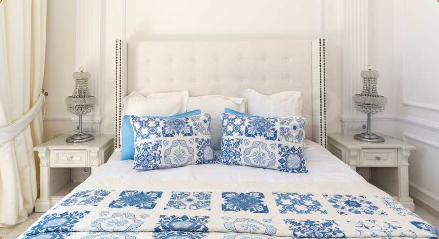 The house is boutique and elegantly furnished, decorated with original stained glass windows and murals with entirely individually made furniture. The interior uses extremely luxurious, natural materials, natural marble "Pyrgos Light".