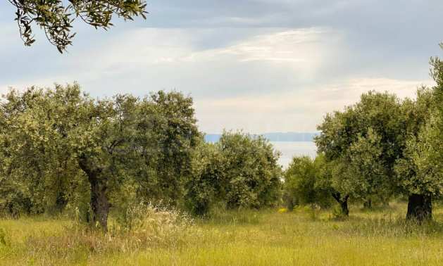 Field, Sithonia, 9312 m², sea view, open view, Eastern orientation, Outside the village, Slanted, Close to the sea, Panoramic, Faces main road, Olive field inside, Suitable for photovoltaic systems, Complete - Buildable, Perfect for house building, Perfect for commercial usage, Perfect for villa building