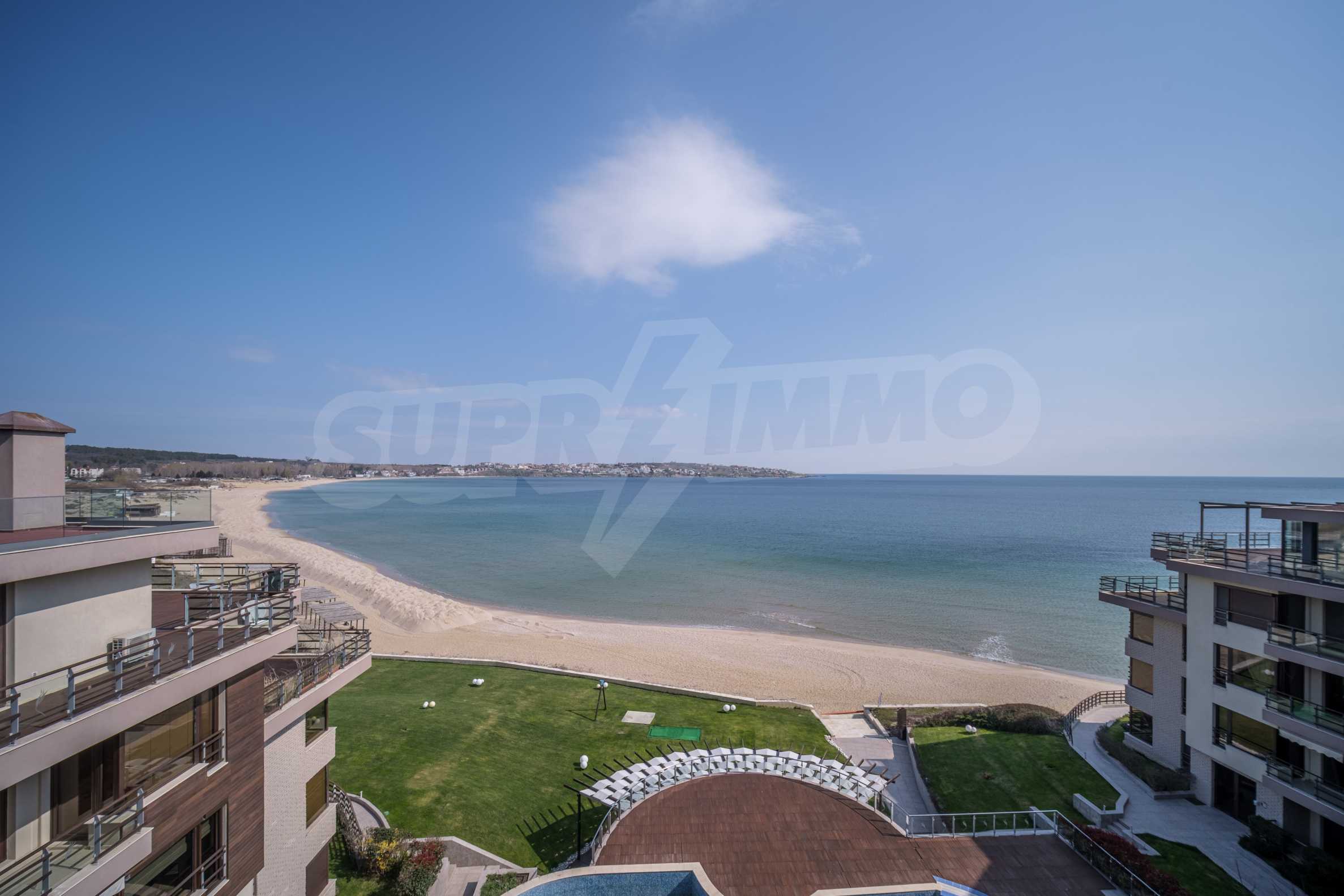 The complex has a distinctive location on the beach, and available to residents and their guests have first-class amenities, including free parking, outdoor pool with relaxation area, sun terrace and private beach with umbrellas and sunbeds. The popularity of the complex during the summer season, for recreation and seasonal stay by the sea bay, contribute to this property being an attractive investment.