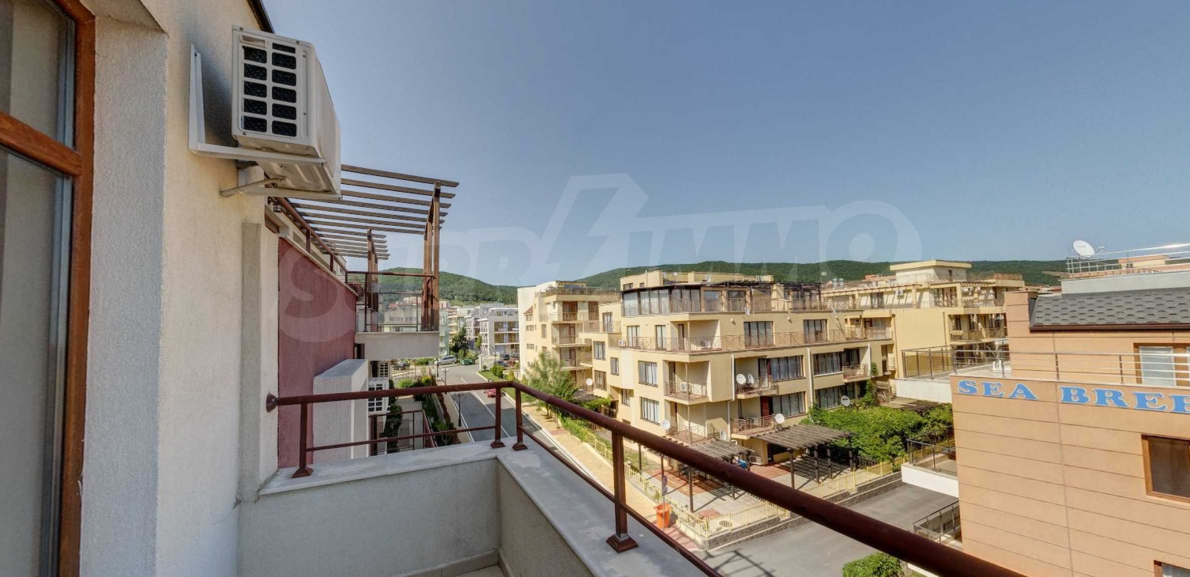 The property is located on the 7th floor and offers two terraces with views of the sea, the resort and the hills of Stara Planina.