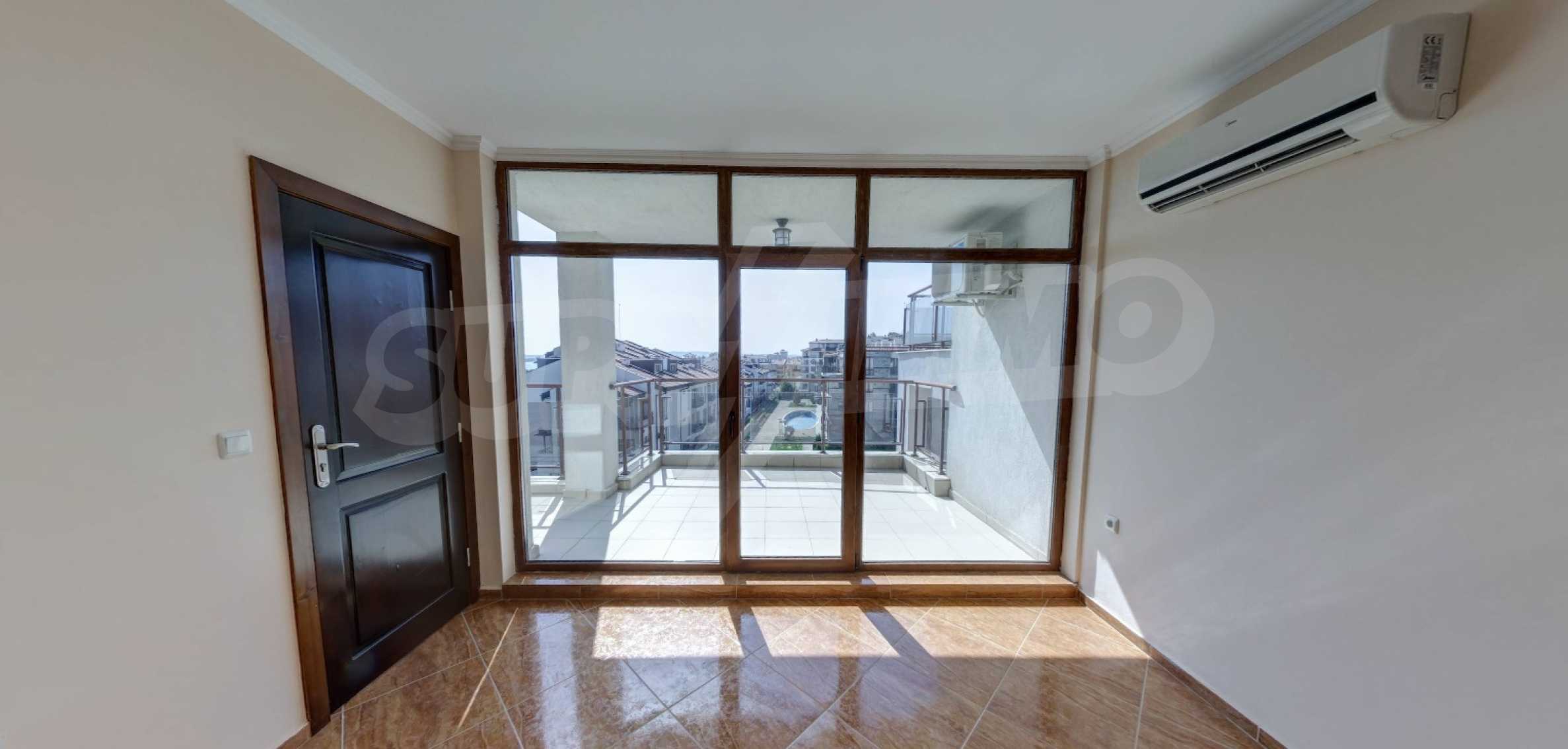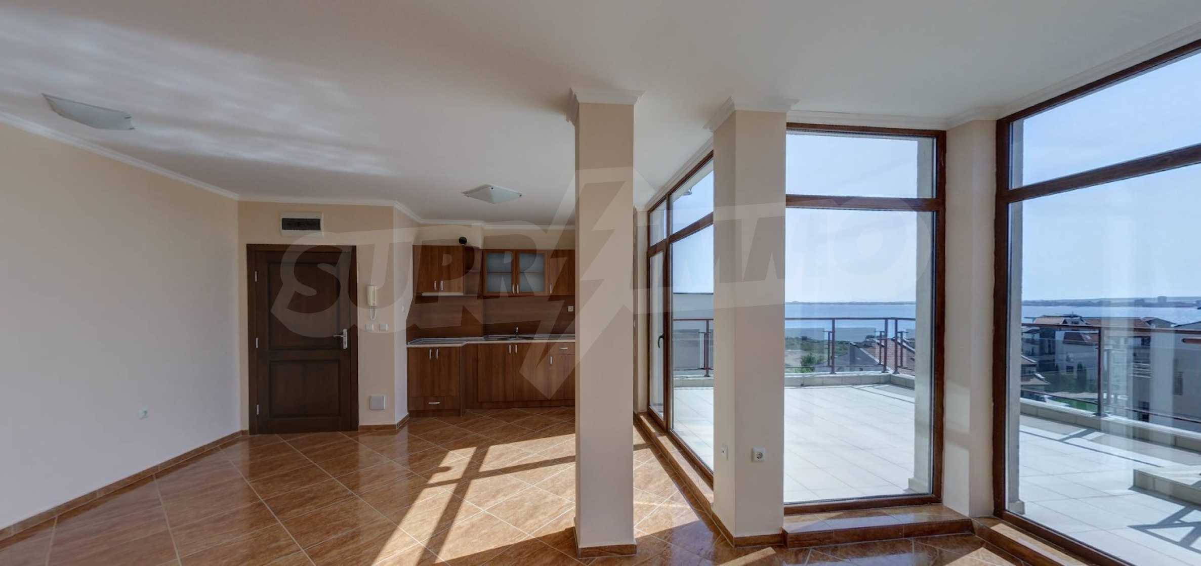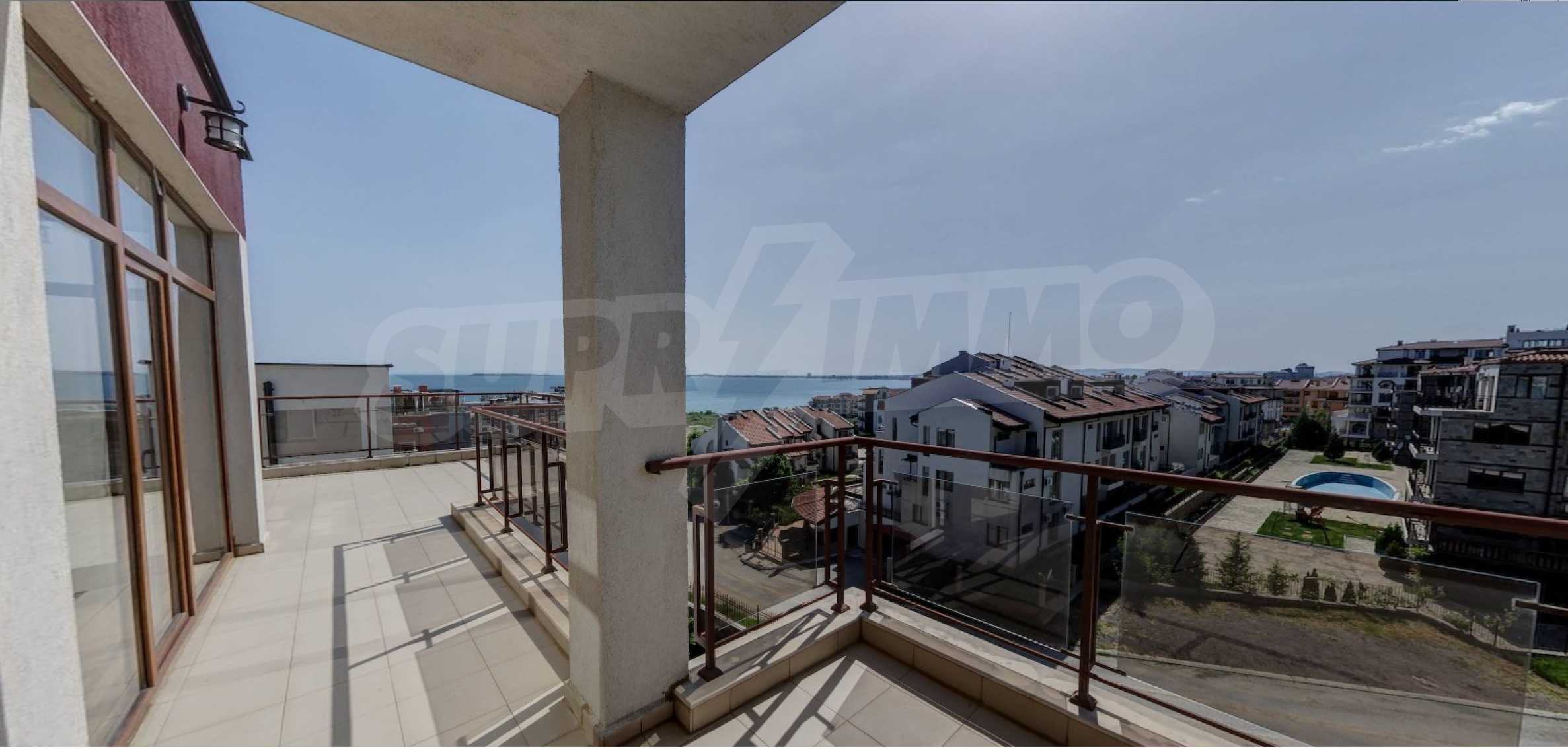 We present a panoramic three-room penthouse for sale, in an attractive complex with a modern look, located only 150 meters from the sea in the town of Sveti Vlas.
