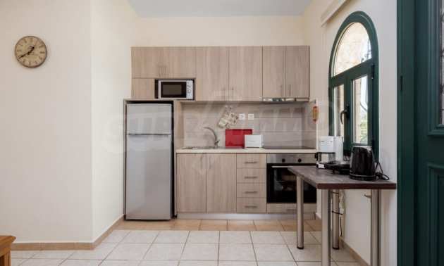 In the third house, we find an open plan kitchen/dining room, one bedroom with a double bed and a bathroom, while on the first level we find one bedroom with 2 single beds.