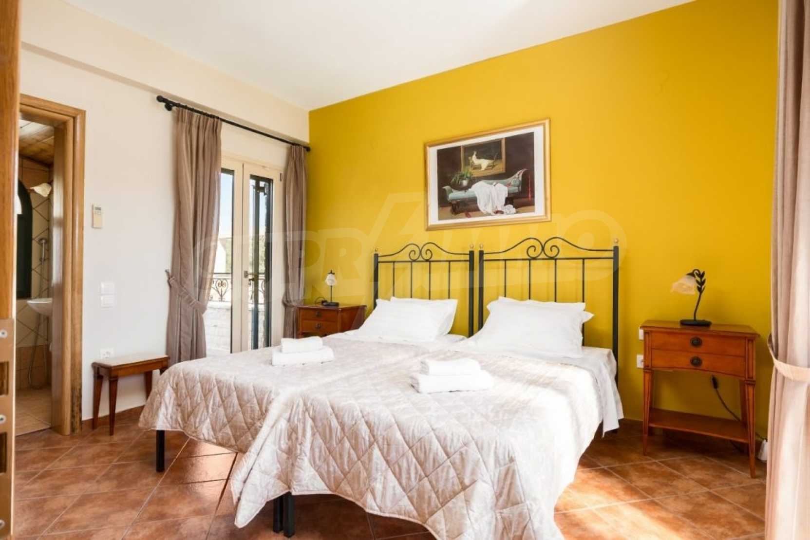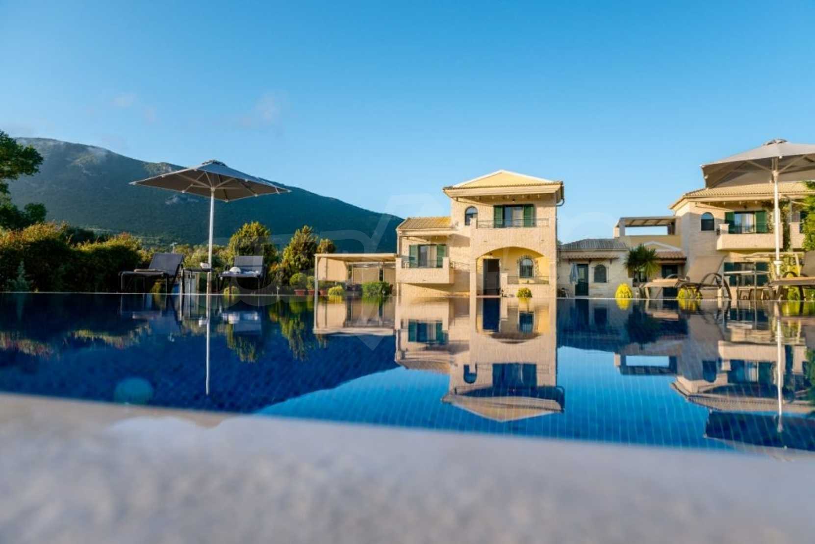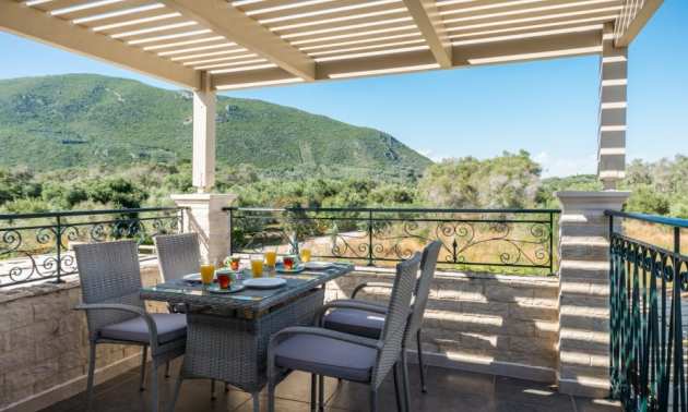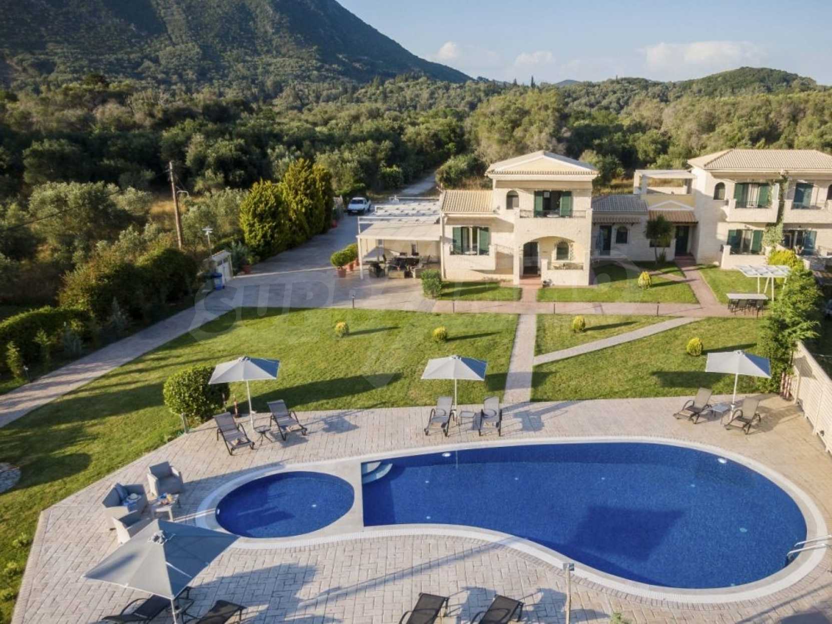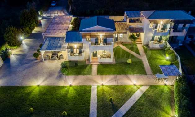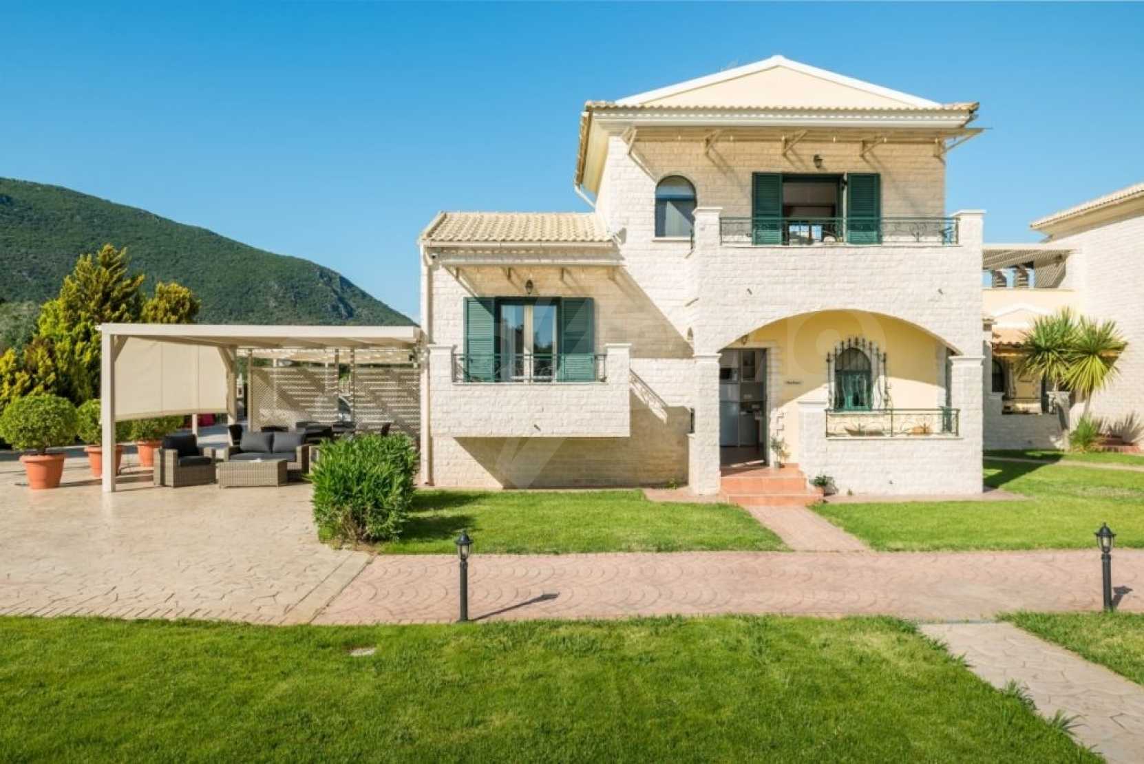 In a privileged position surrounded by nature and at close distance from the crystal blue waters of the Ionian Sea, this villa dominates. Nestled in a beautiful, unspoilt location in the area of Chalikounas, at close distance from Korission Lake, which hosts many rare species of flora and fauna.The villa is divided into three stone built houses, totaling 194 sqm on a plot of 3.530 sqm.The first house has an open plan kitchen/dining room, a bedroom with two single beds and a bathroom. The first level has one more bedroom with a double bed.