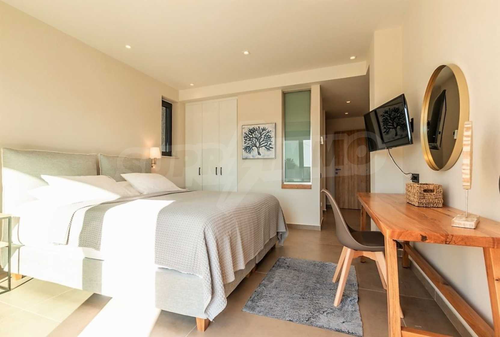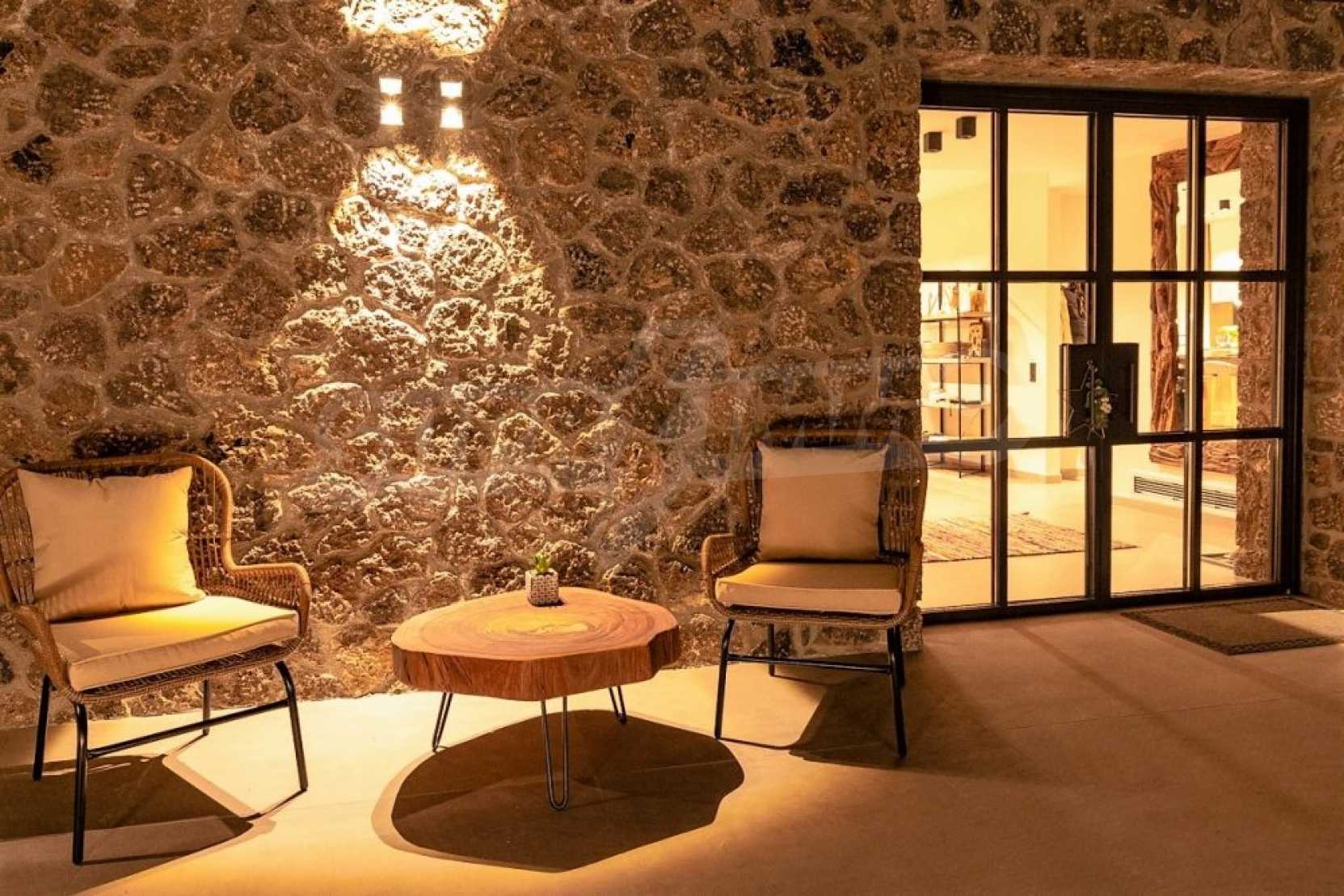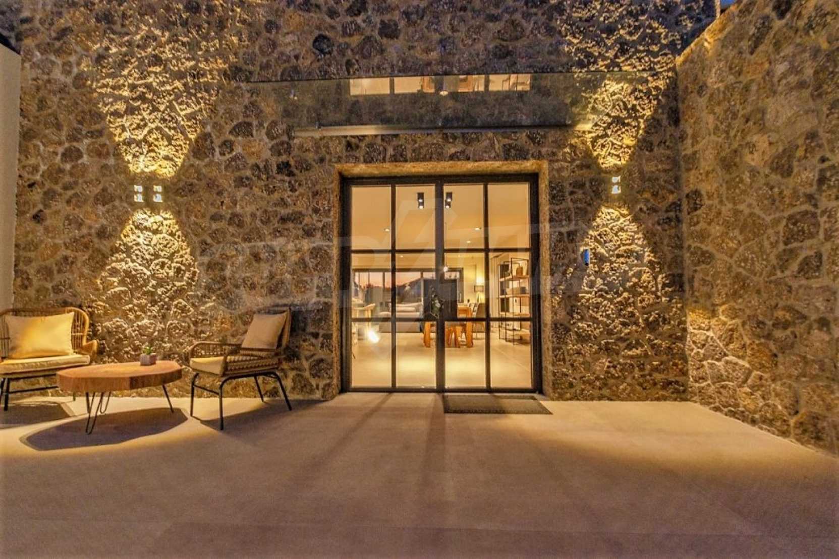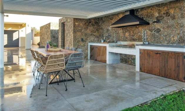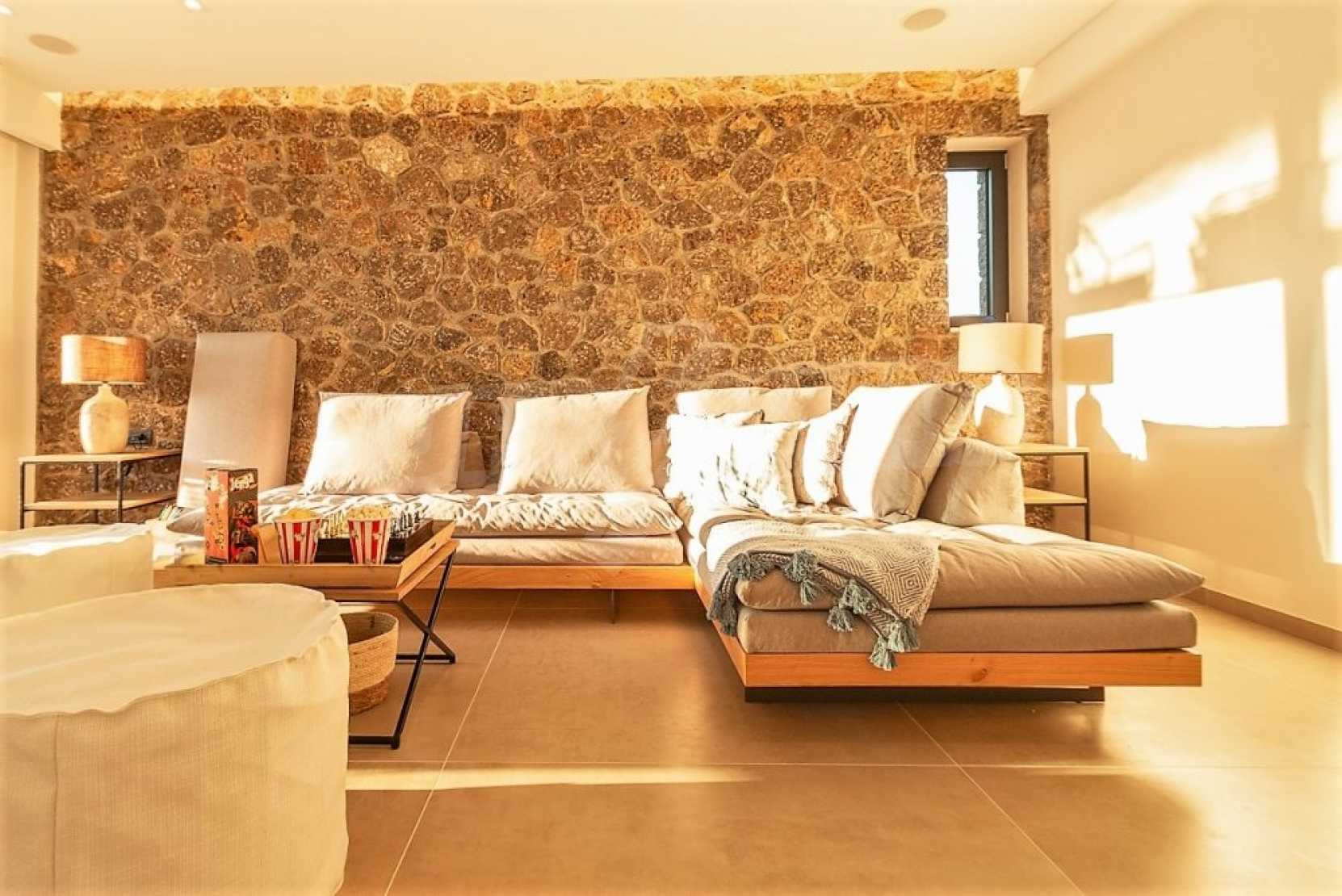 So, a residence that will make you an even more conscientious citizen. How? With an innovative, bioclimatic energy-saving construction based on exclusive local stone & Oak materials and also rainwater is stored after the desalination and osmosis treatment process, It is used for drinking water, as well as for replenishing the pool water and the garden irrigation system. You will store solar energy for heating and hot water use.