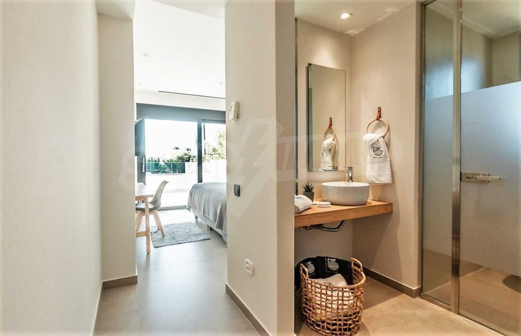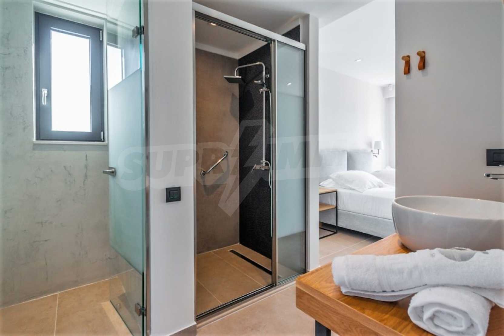 The villa stands out both for the quality of the materials that have been used in construction and for the furniture that was made with undivided attention and taste. But what makes this villa unique is that it is a Smart House. All the possibilities of high technology in your hands. The Tag system (keyless) is used to operate all the doors, while a tablet allows you to control additional features, such as barbecue shutters and cooling/heating systems. But it is not only that. Respect for the environment is the number one in our time. The villa was built taking advantage of the natural resources of both the sun and the water.