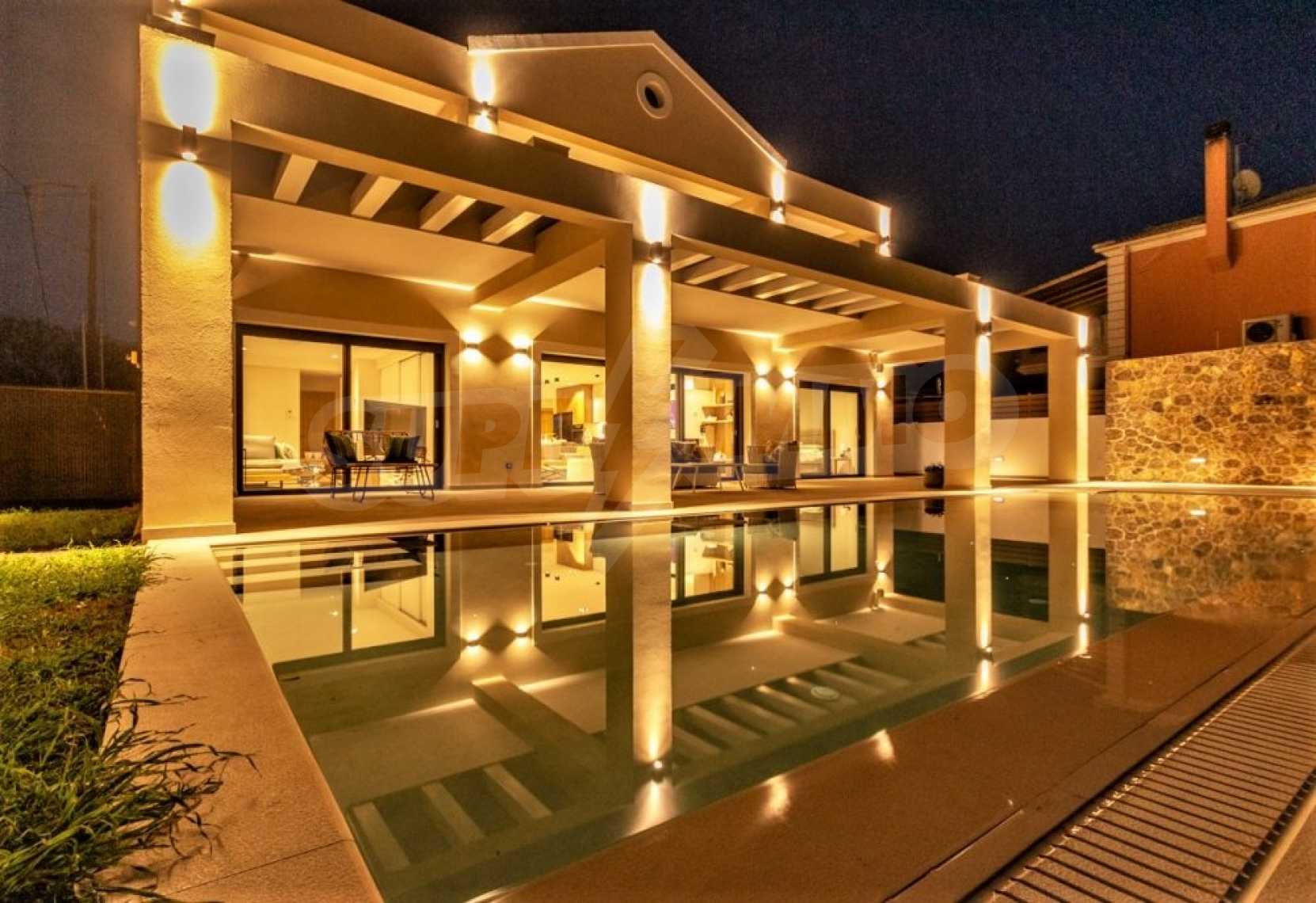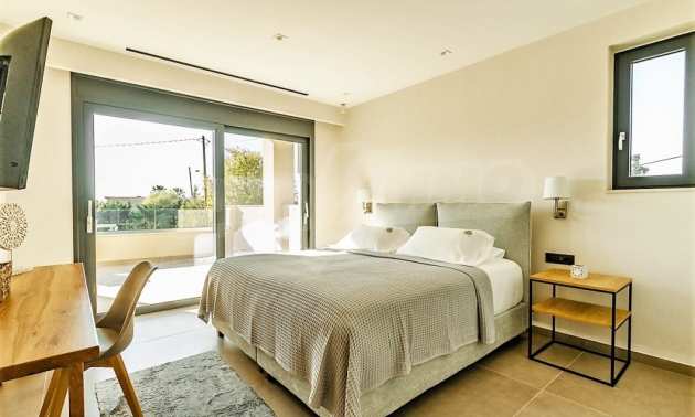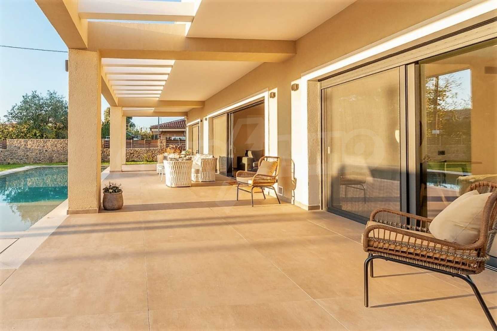 On a green plot of approx.721sqm, this villa consists of a large living room with a seating area and dining area as well as a very modern kitchen with direct access to the terrace, pool and garden. It has 5 bedrooms, ready to accommodate your friends, each with its own bathroom.