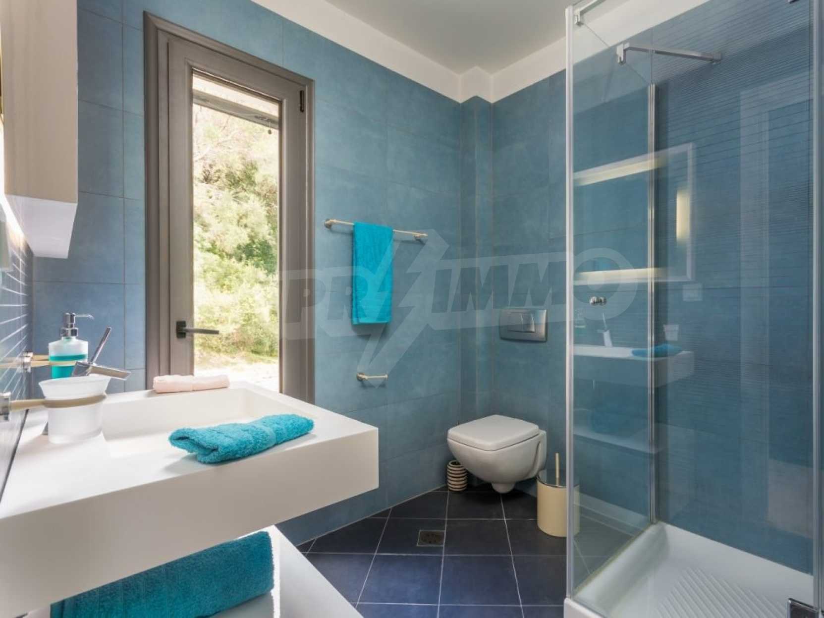The second floor measures 120.8 sqm and consists of the master bedroom with its own walk-in closet and bathroom and three bedrooms with en-suit bathrooms, all providing amazing sea views.