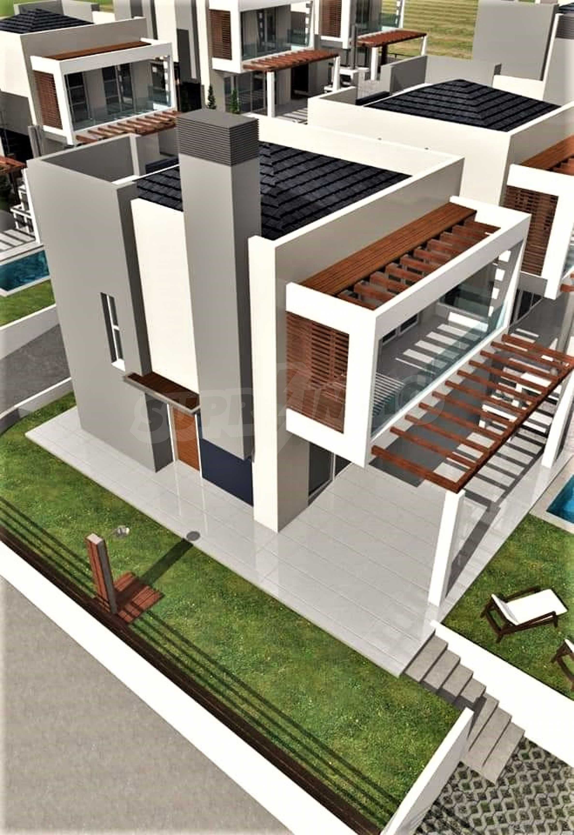 We offer you a modern villa in Nea Iraklia, Halkidiki. The house is located in a complex under construction, consisting of 8 identical villas, 5 of which are for sale. The villas have modern architecture and combine luxury and comfort in their size and layout. Each has its own secluded courtyard with pool and parking space. In the immediate vicinity of the house you will find a 150-200 m beach, as well as the famous Sahara Resort Beach Bar.