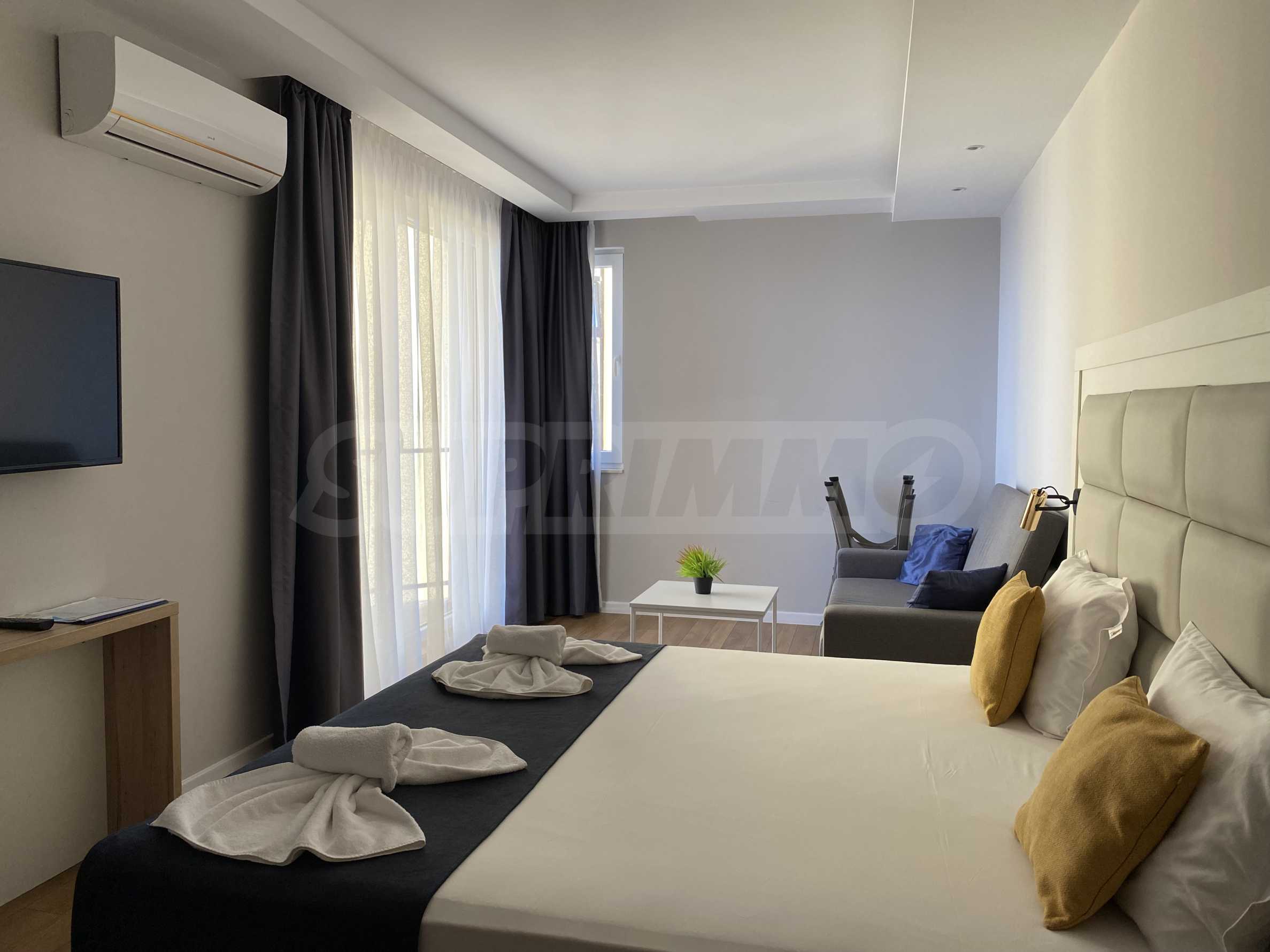 The property in such a complex is a dream come true - a lot of style and elegance, impressive sea views, green areas and a modern panoramic pool on the absolute first line. The luxurious apartments and studios are furnished with taste and a modern approach, creating a prerequisite for a wonderful family or romantic vacation in this quiet and peaceful region of the Bulgarian Black Sea Coast.