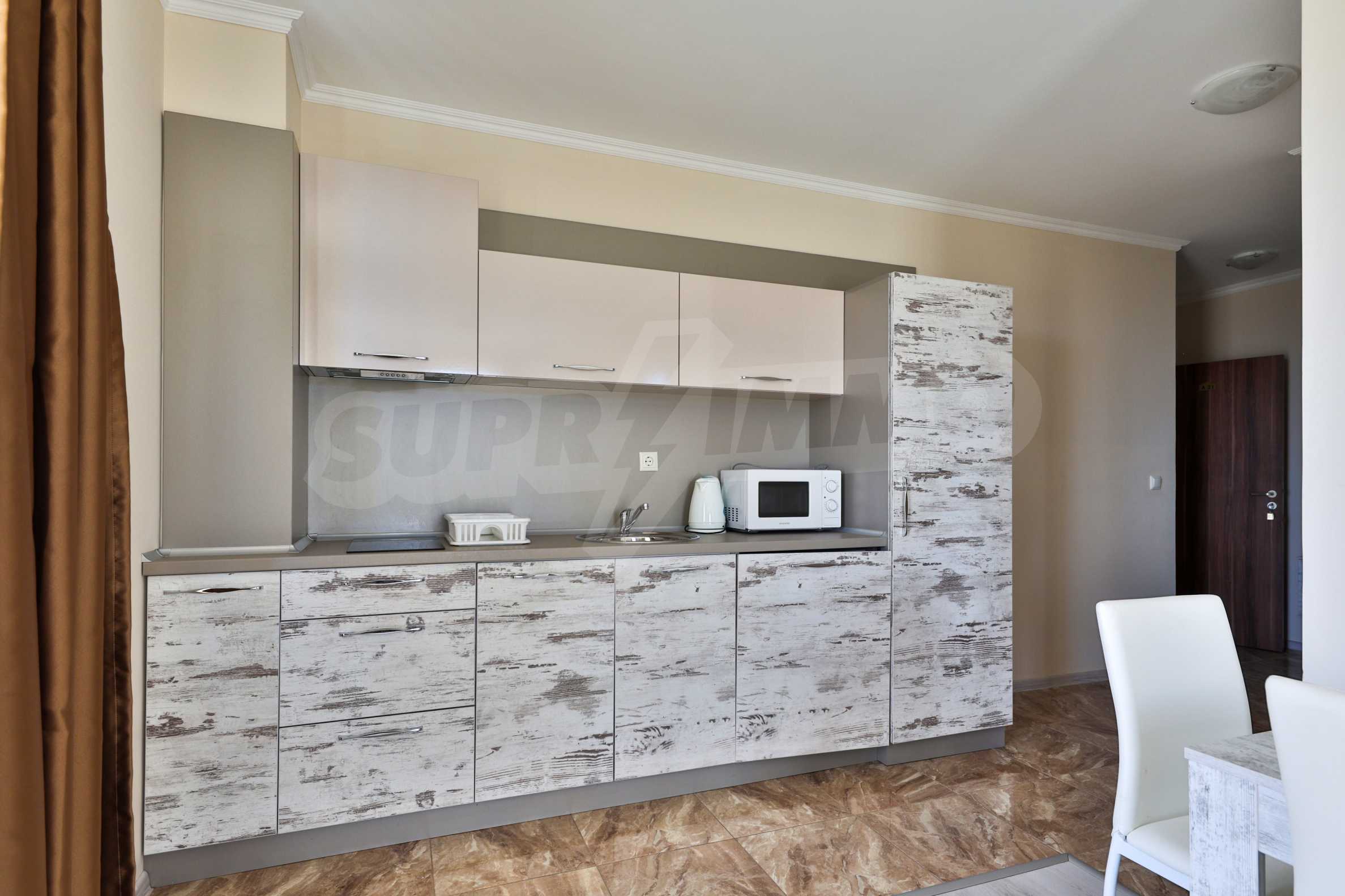 We present a one-bedroom apartment for sale, in a new, elegant complex with a pool and spa area, located only 160 meters from the Central Beach in Saint Vlas.