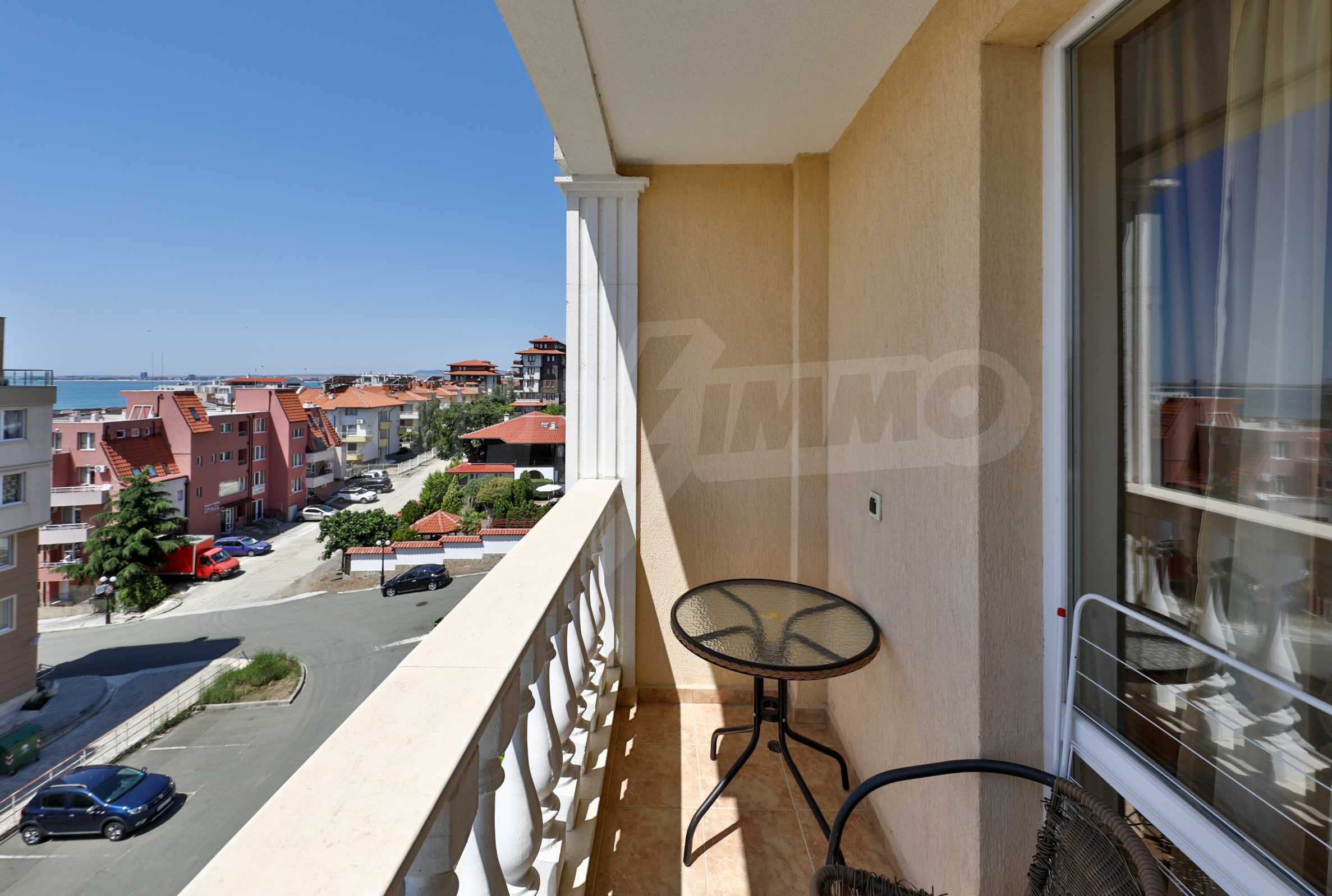 The complex is located on a quiet and peaceful street, with a natural unevenness, allowing a beautiful panorama of the sea and the hills of Stara Planina. The location offers easy and quick access to the central part of the resort, as well as to the prestigious marina of Saint Vlas - "Marina Dinevi".