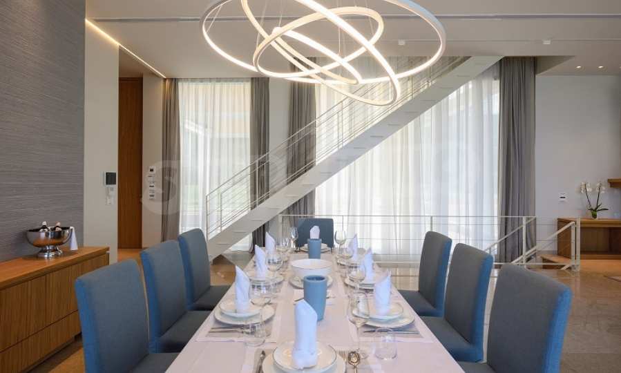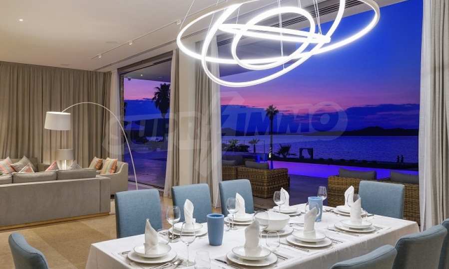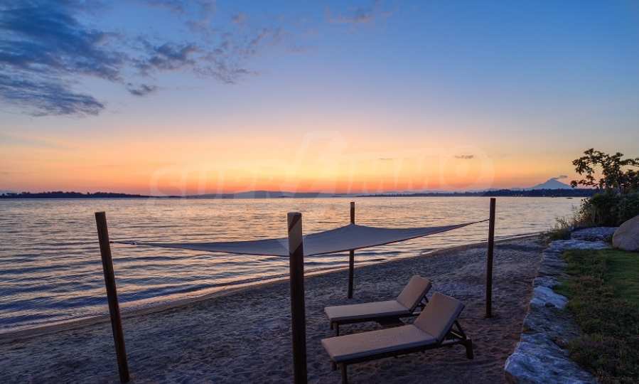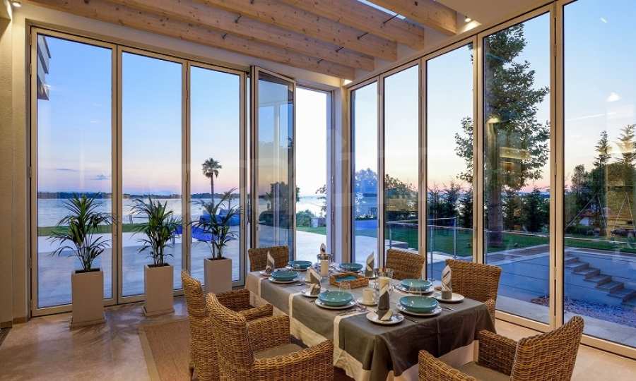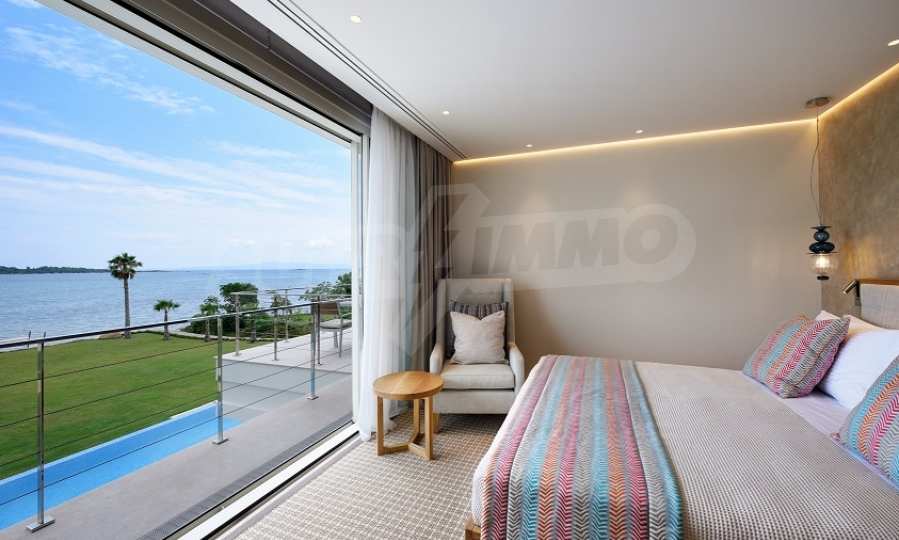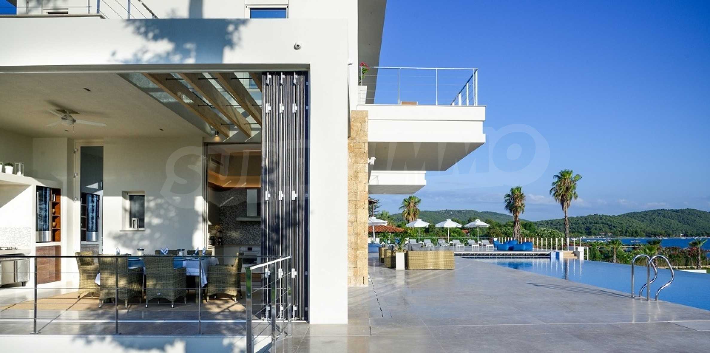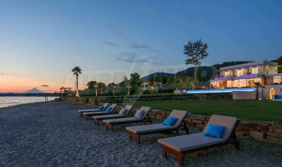 EXCLUSIVE construction of our company. The leading waterfront villa in Sithonia, Halkidiki, one of the best properties in Greece. Villa offers 6 double bedrooms with en-suite bathrooms, 2 separate independent suites with their own kitchen and bathroom each and a vast living area in front of the majestic swimming pool. Villa offers a variety of activities, such as tennis court, mini football, a fully equipped gym, play room and a playground for the kids, as well as luxurious sun-beds around the two heated swimming pools and shaded spots for relaxation.