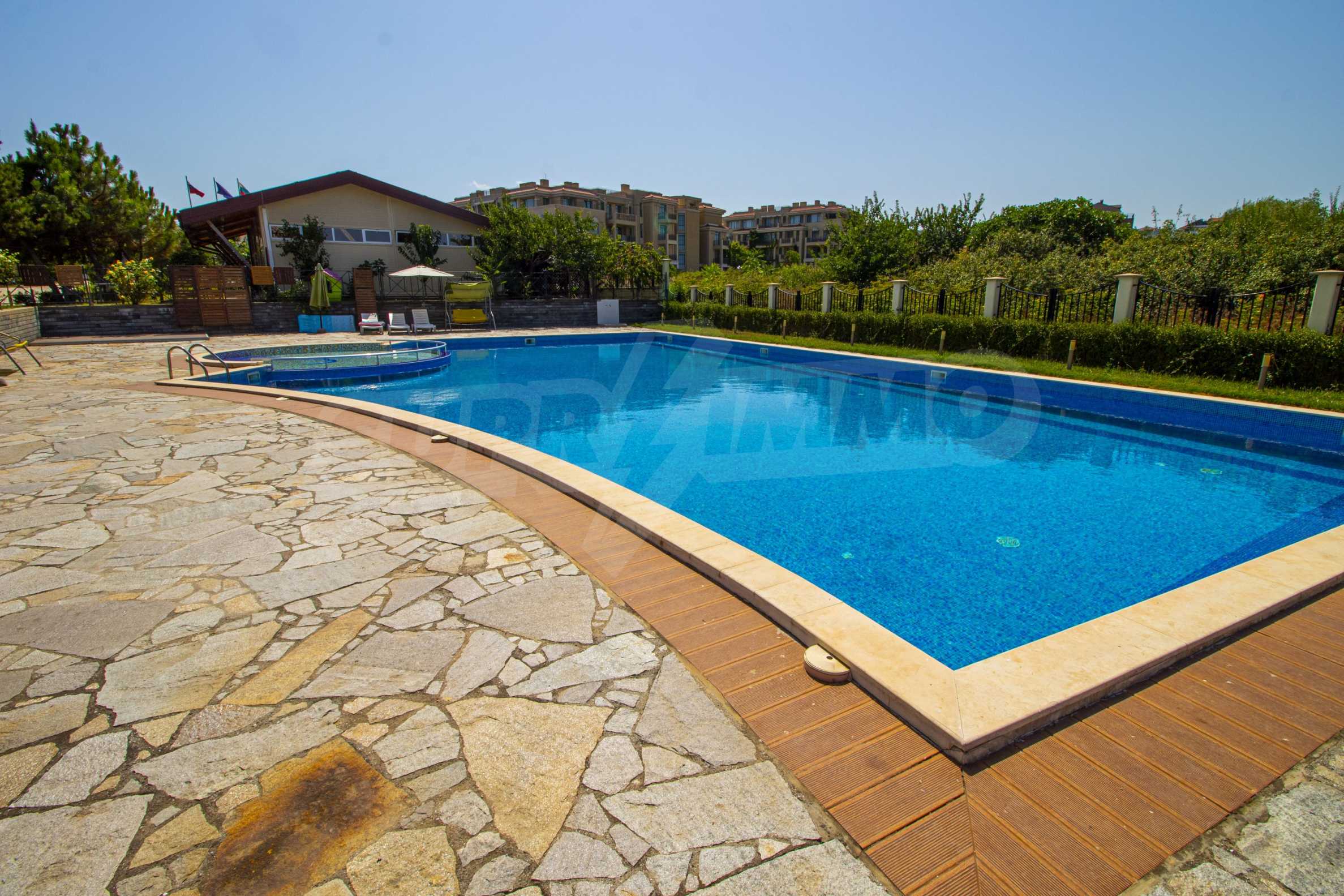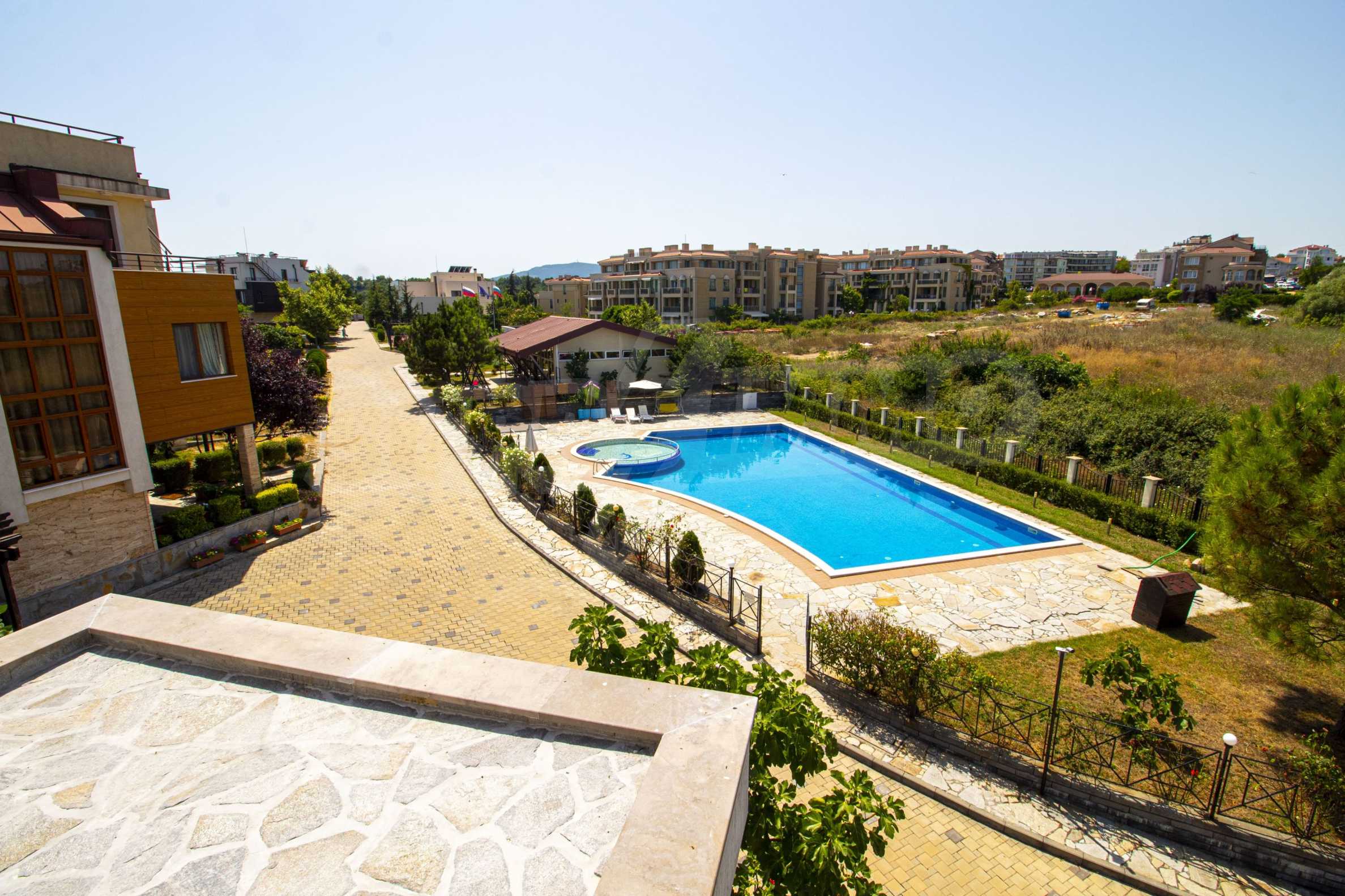 The modern house that we present for sale is part of a first-class complex of houses with a swimming pool and amenities, located on the first sea line in Chernomorets.
