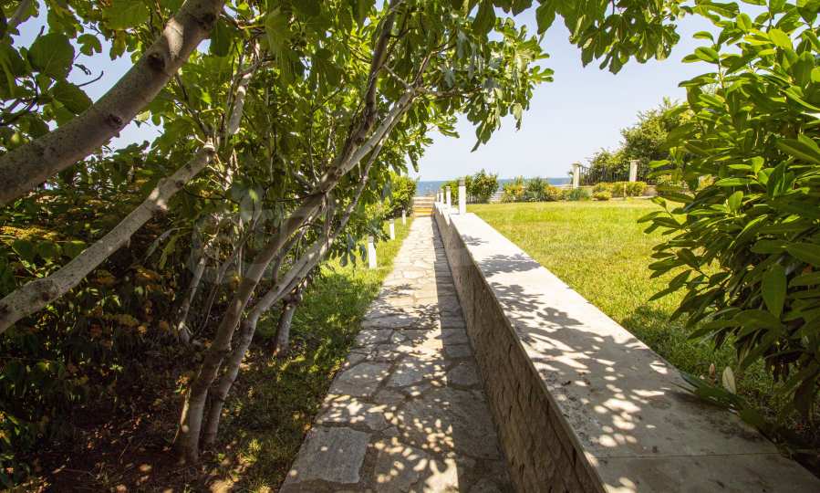 The first floor consists of a winter garden, a living room with a kitchen, a bathroom / WC. On the second floor, there are three comfortable bedrooms, three bathrooms/toilets and an office. The third floor consists of one bedroom, one bathroom and a large office. The property reveals an incredible view of the beautiful sea bay and the greenery of the resort.