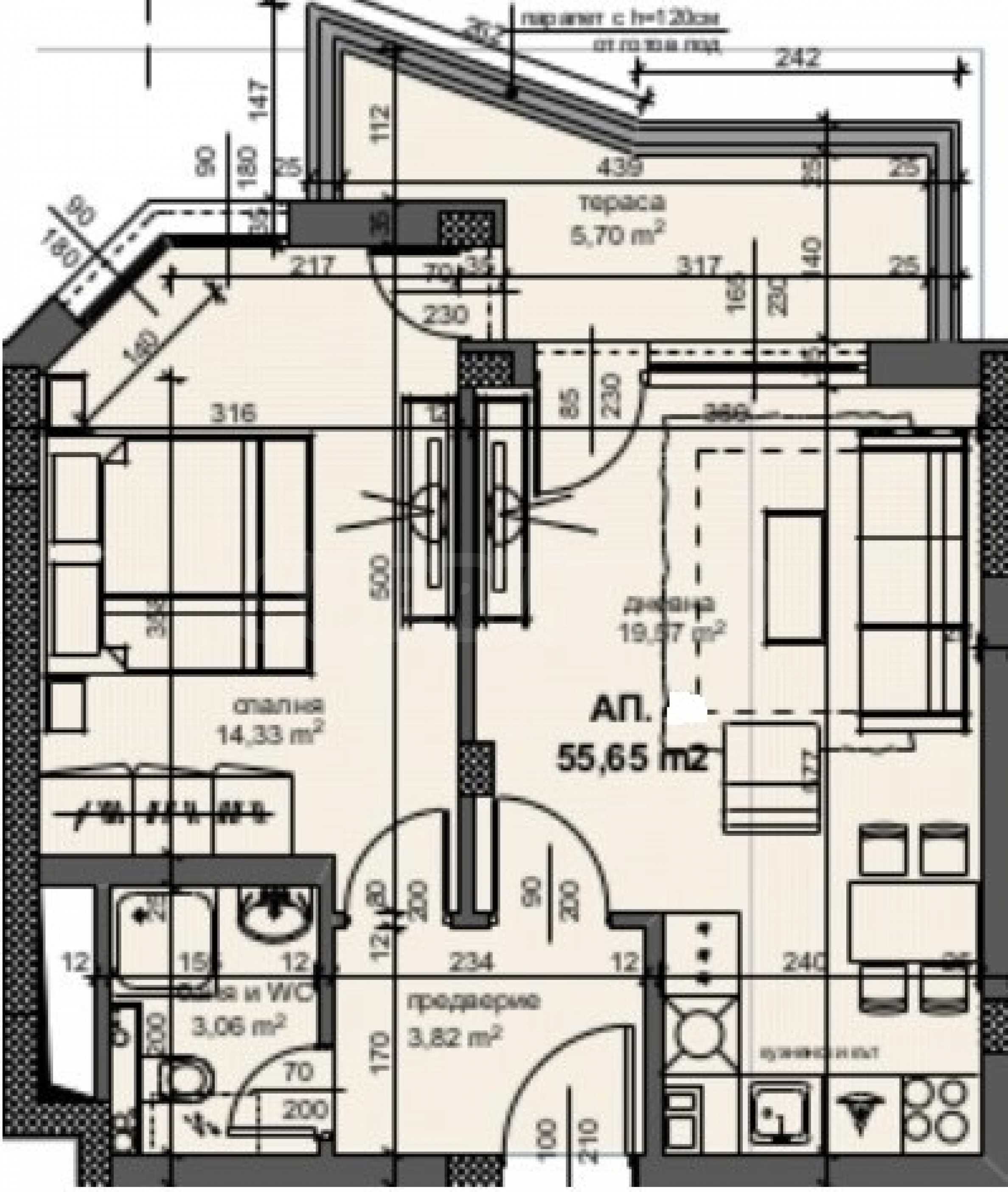 We present a one-bedroom apartment in a modern complex, in the "Hristo Smirnenski" district. With an excellent location, minutes from the city center and the Medical University, close to Mall Plovdiv, Lexi store, Selena and Pulmed hospitals.