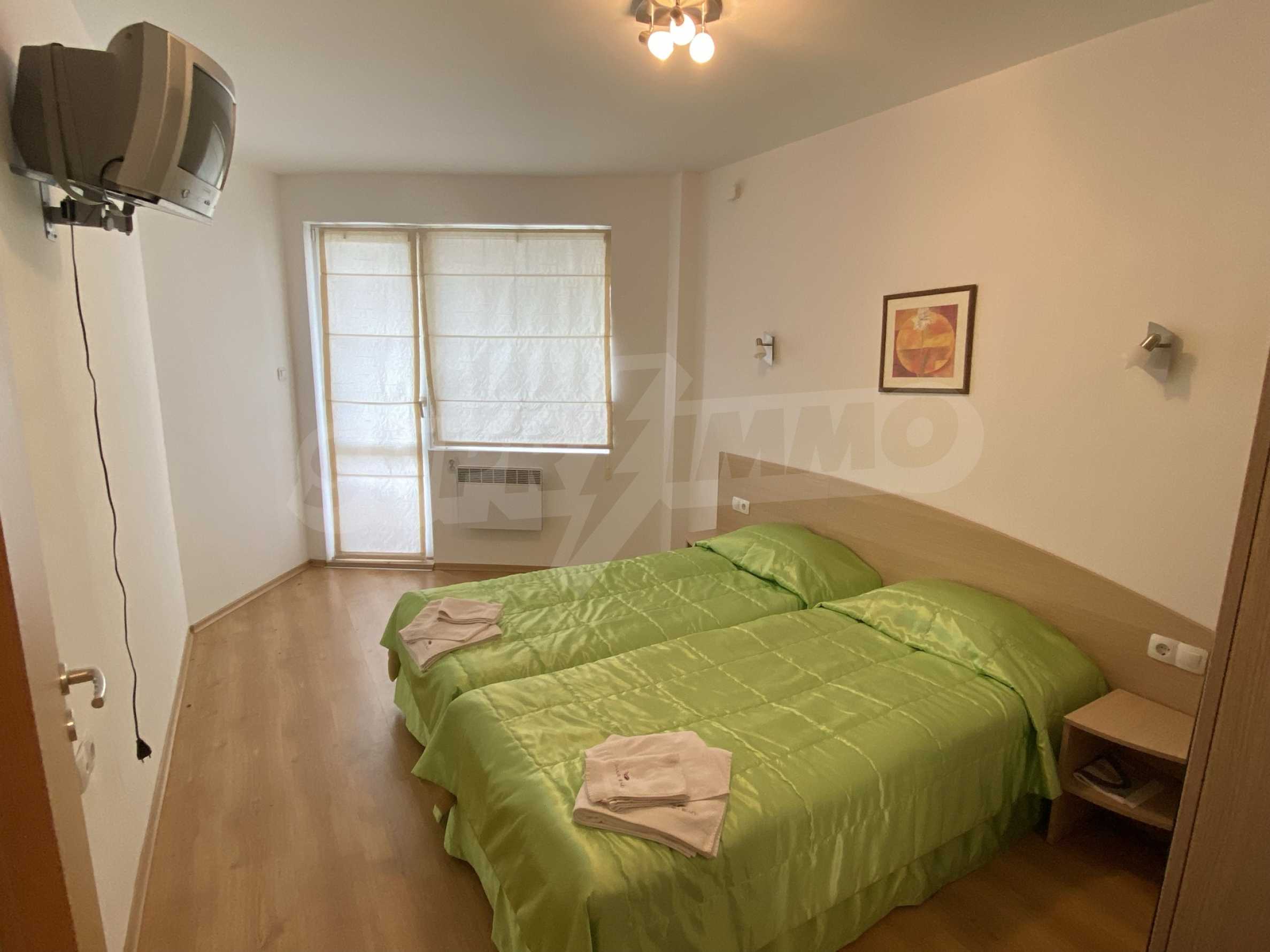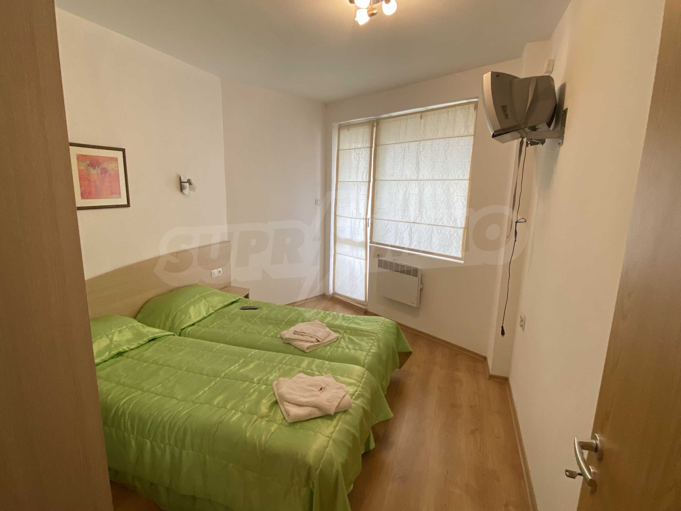 We are glad to present this furnished two-bedroom apartment with a view of the Danube River in the gated complex "Danube Beach".